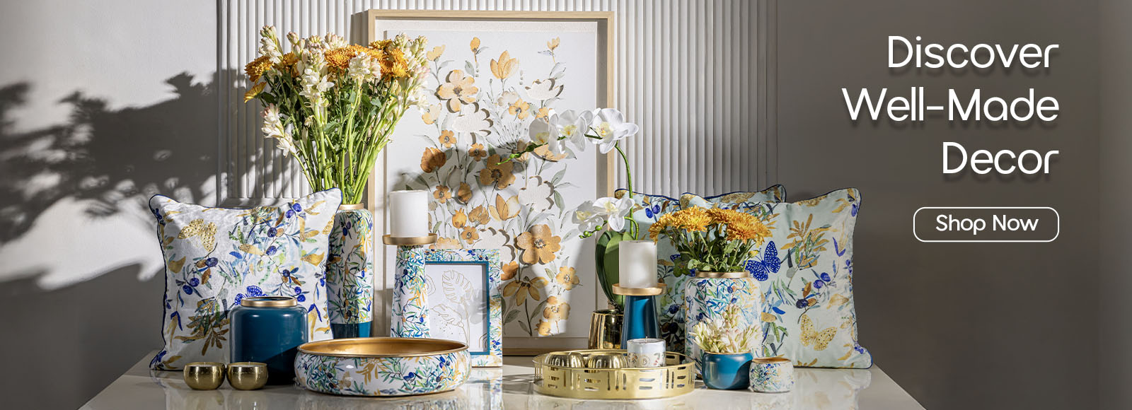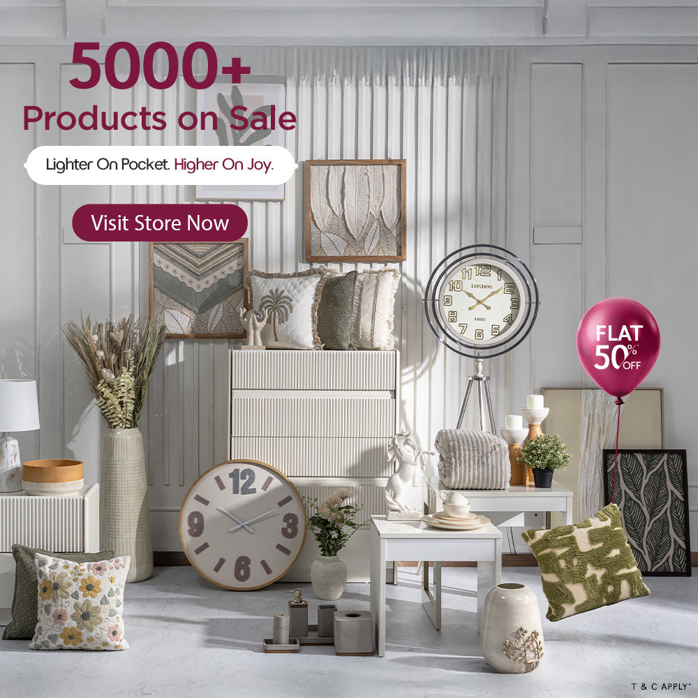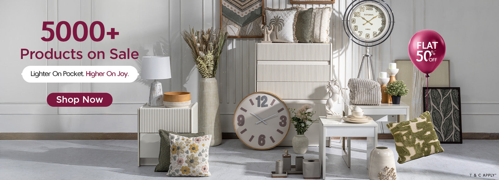 Carpets, Mirrors, Table Lamps, BedSheets, Floor Lamps, Wall Light, Lighting, Table Cover, Cushion Cover, Wall Art, Artificial Plants, Photo Frames, Candles, Bath Mat, Vases