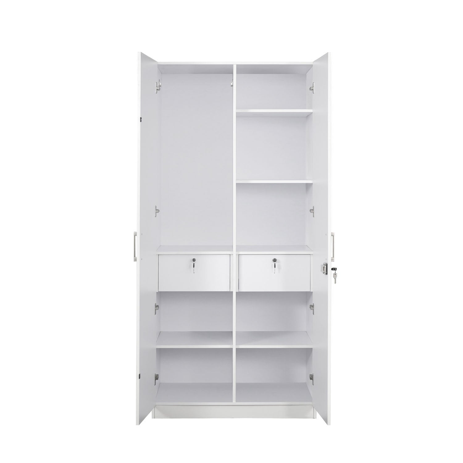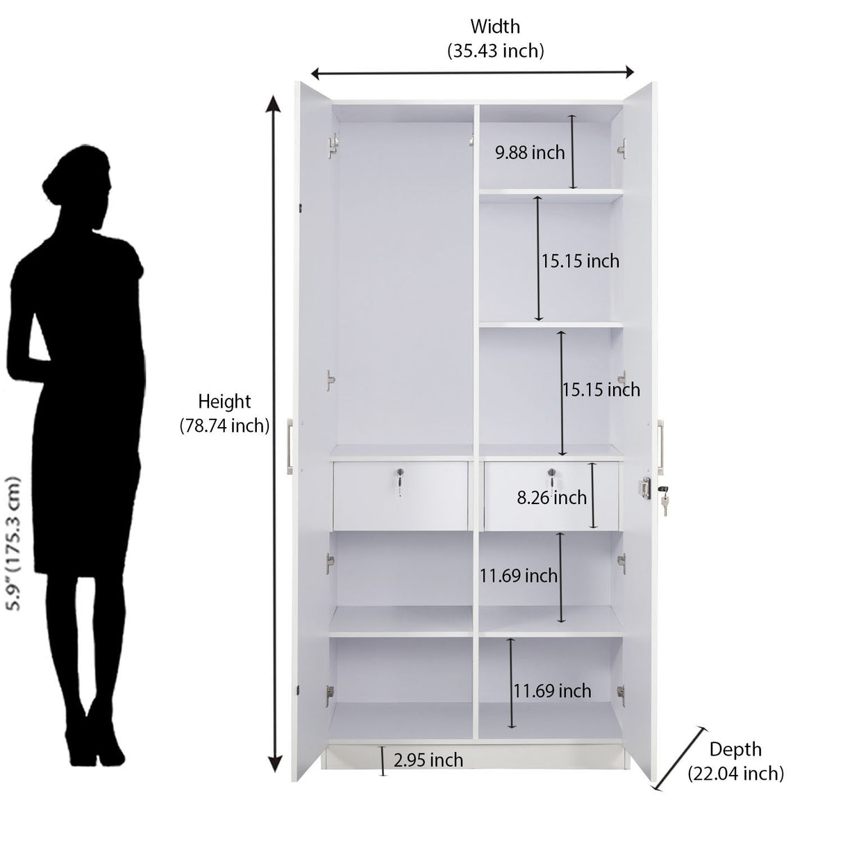 Do you need a place to organise your fashionable and everyday outfits? If so, then the Max 2-Door Wardrobe is the right choice for you. This durable particle board wardrobe by Nilkamal Homes is specifically designed to meet your storage needs and organise your belongings. It has eight spacious storage compartments, including one long section at the top to keep multiple outfits together. The remaining compartments categorise your belongings to make them easier to locate. For securing valuables and important papers, the Max Wardrobe has two drawers. To ensure the safety of your belongings, you can use the lock on the drawers and doors when not in use. Even in terms of design, its striking frosty white colour and clean lines complement any style of décor. Maximize your wardrobe space without sacrificing style with the Max 2-Door Wardrobe.