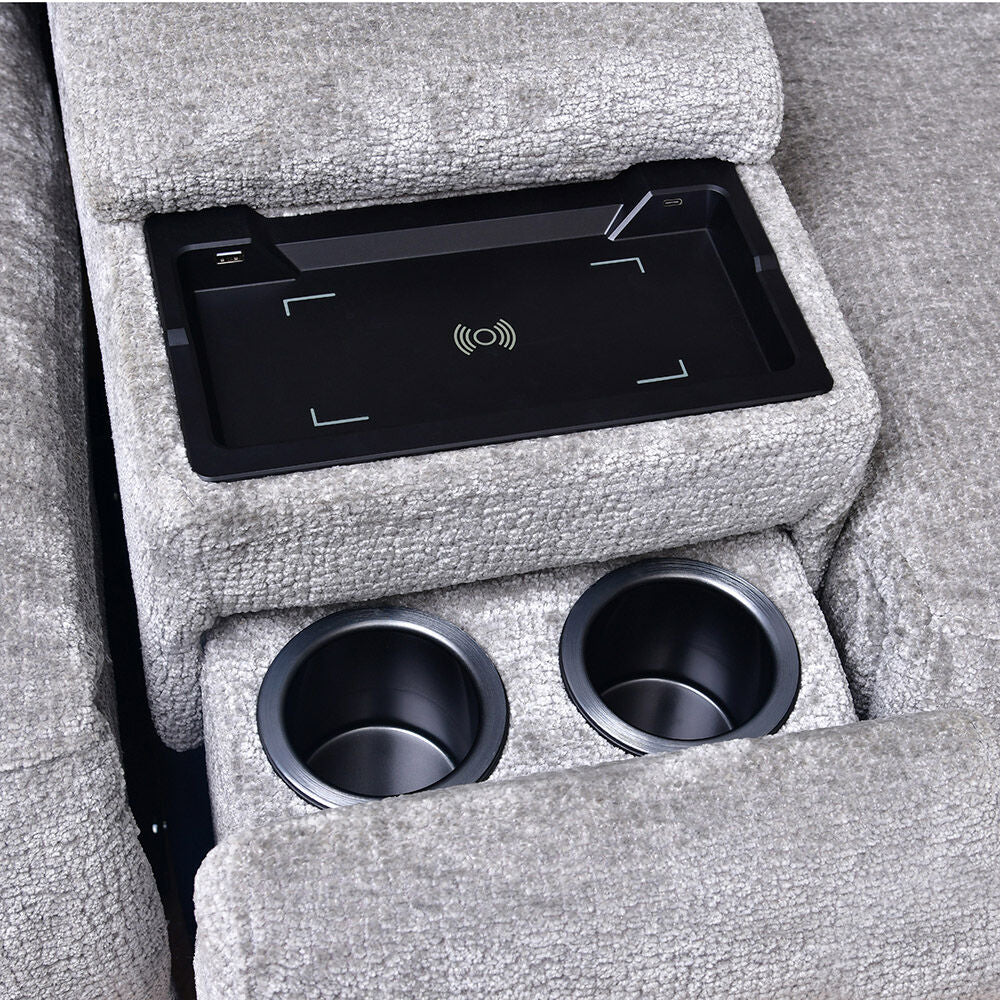 Favian 3 Seater Recliner Sofa With Dropdown Console (Grey)