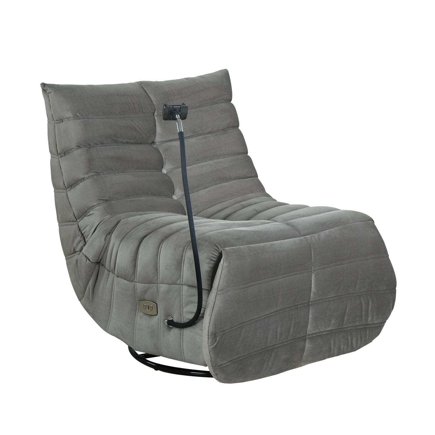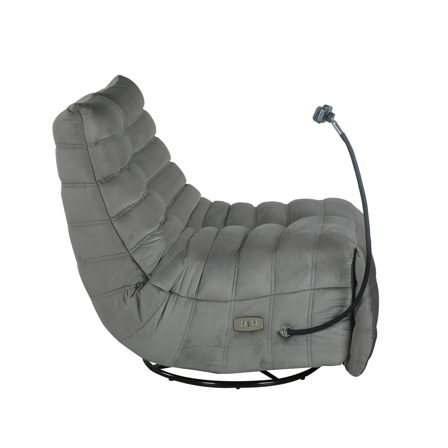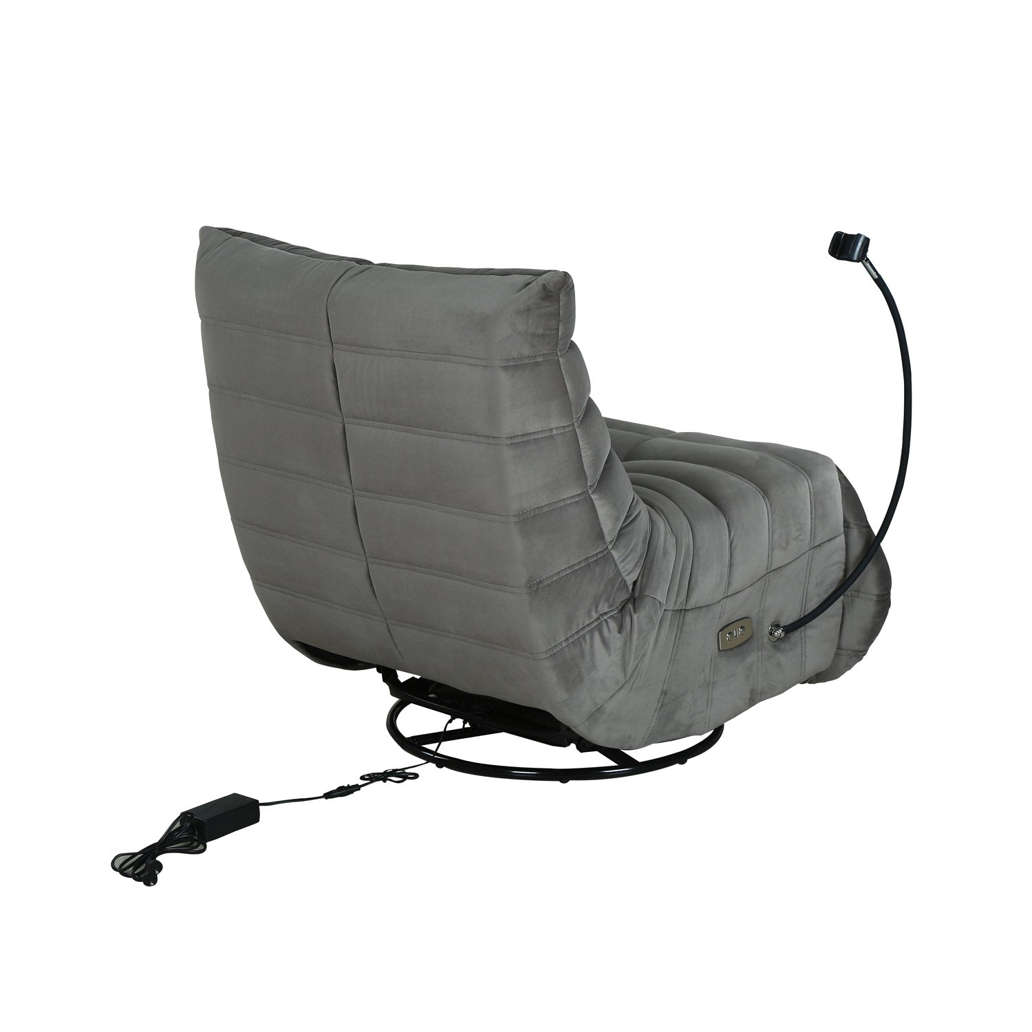 - Multi-functional recliner offers electric reclining, rocking, and swivel functions for maximum comfort