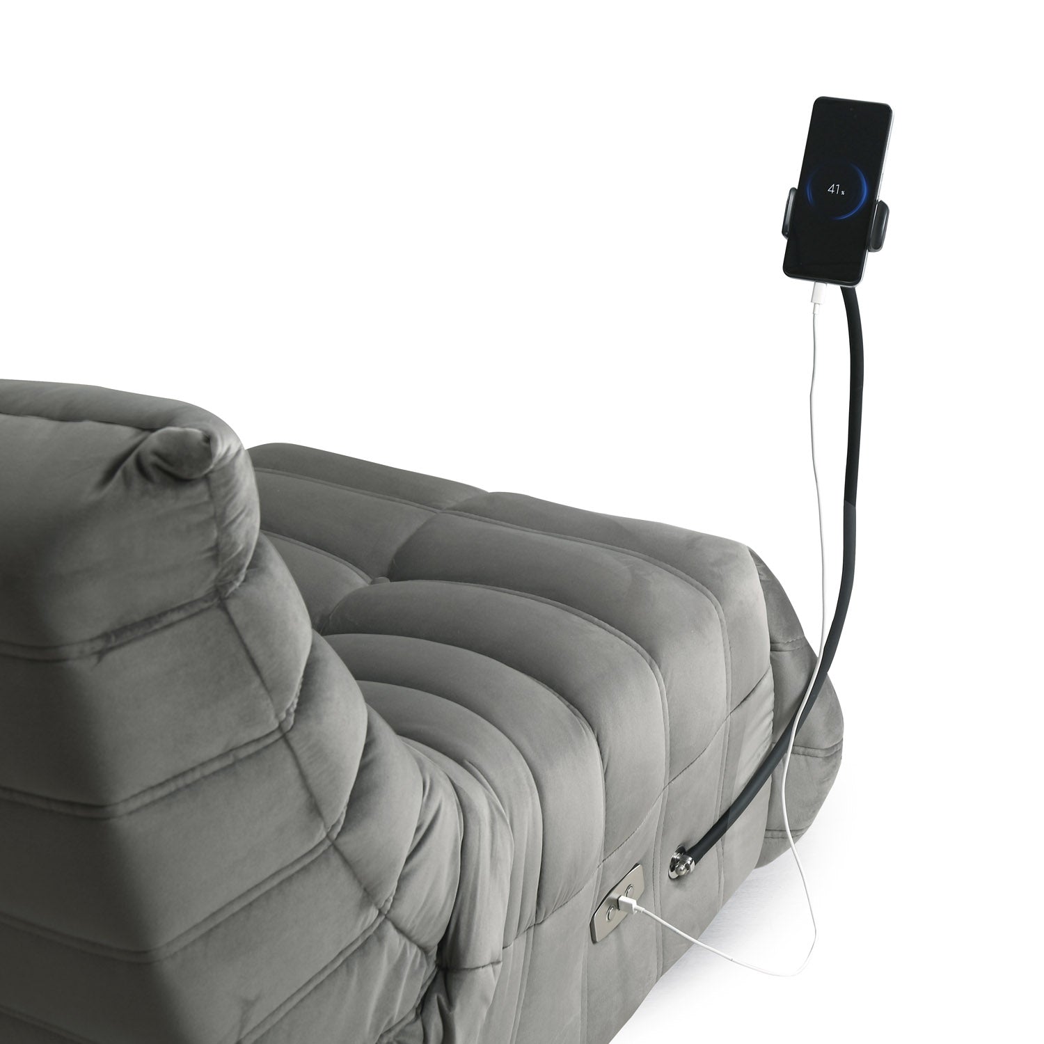 The Nilkamal Homes Adore Rocker Recliner blends style and functionality to elevate your living space. Its stylish leaf-like design with a contemporary silhouette enhances modern interiors with elegance. This multi-functional recliner offers electric reclining, rocking, and swivel functions, delivering maximum comfort and versatility. The innovative floating mobile holder adds hands-free convenience without compromising aesthetics. Designed for superior relaxation, it features plush cushioning that offers exceptional ergonomic support for long hours. Wrapped in premium grey velvet upholstery, it ensures durability, easy maintenance, and a soft, luxurious feel. Built with a sturdy MDF board and plywood frame, reinforced by a metal base, it guarantees lasting durability and structural strength.