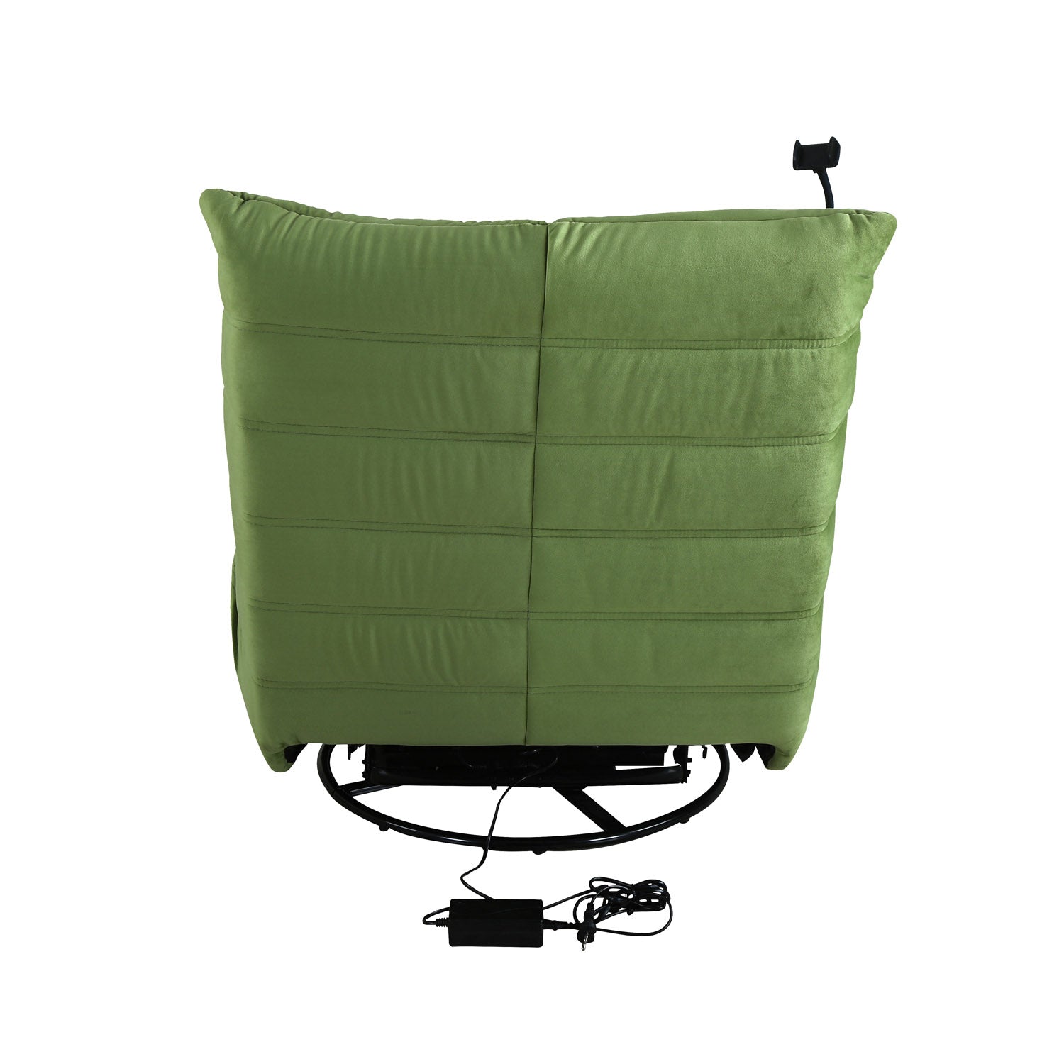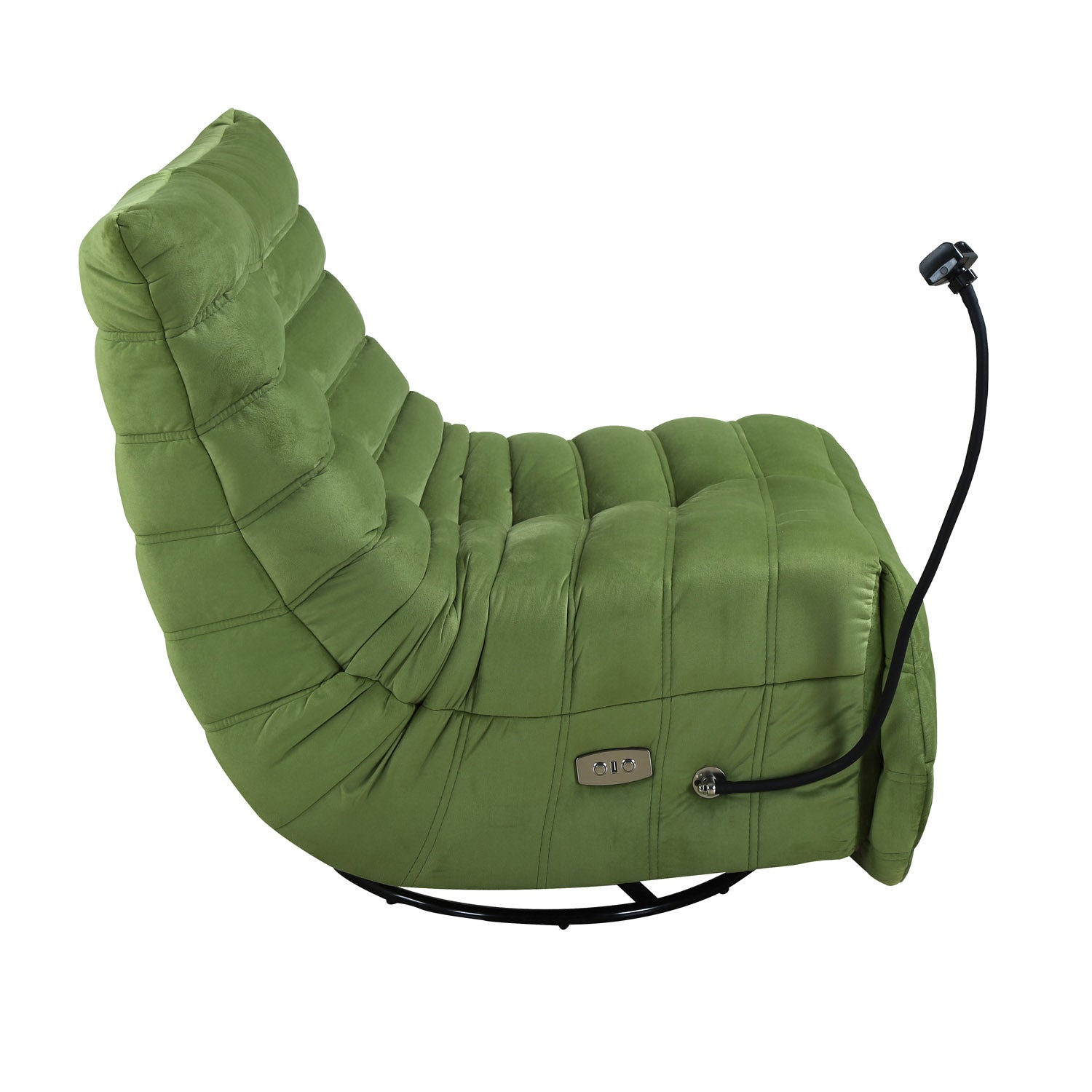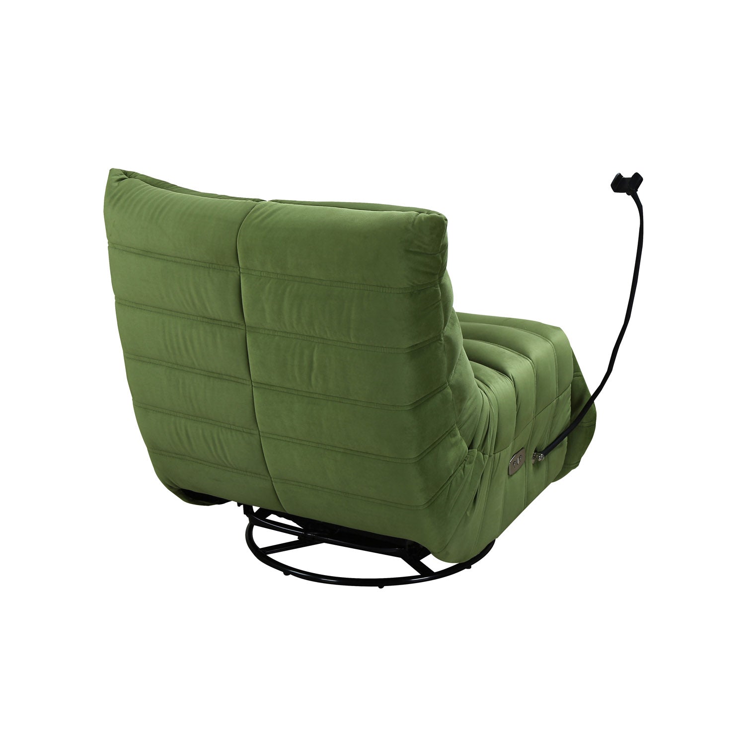 - Multi-functional recliner offers electric reclining, rocking, and swivel functions for maximum comfort