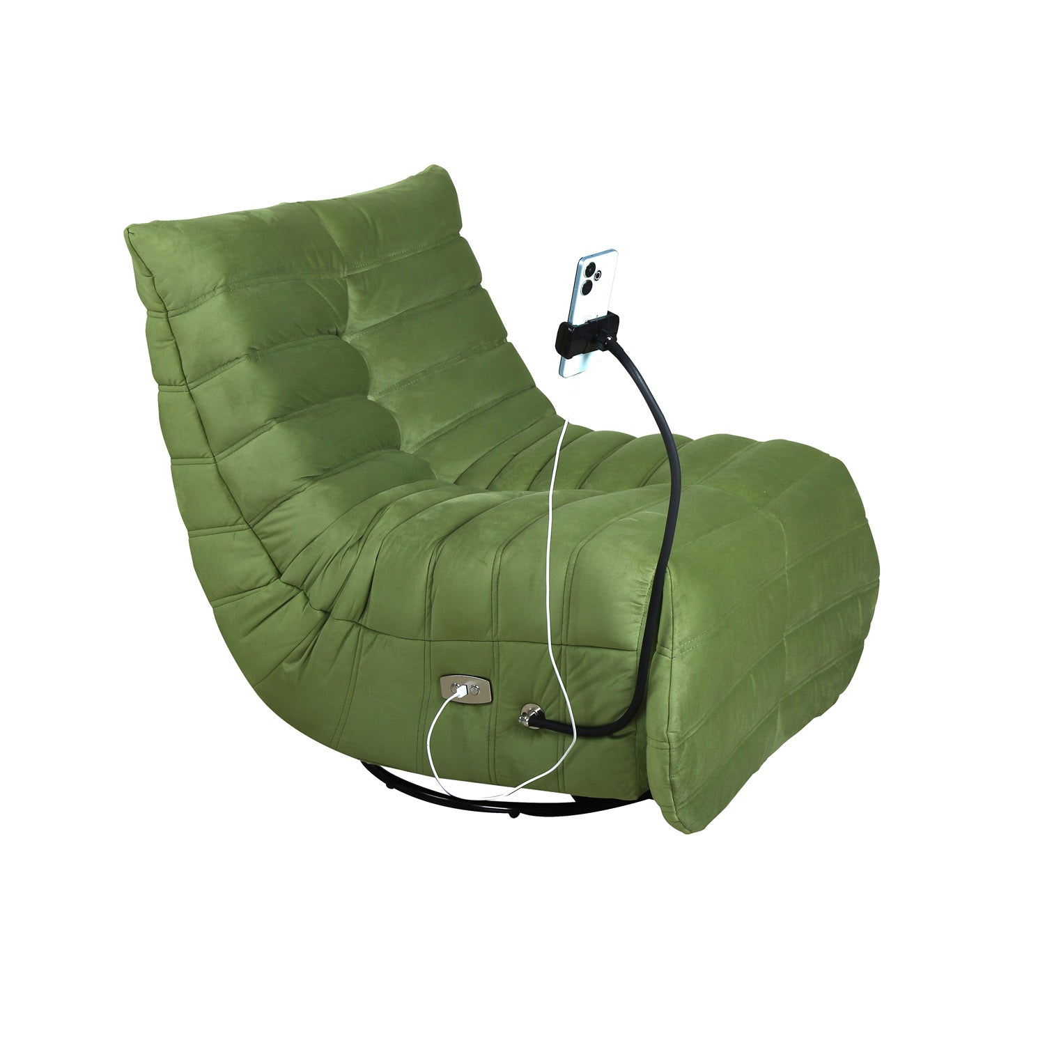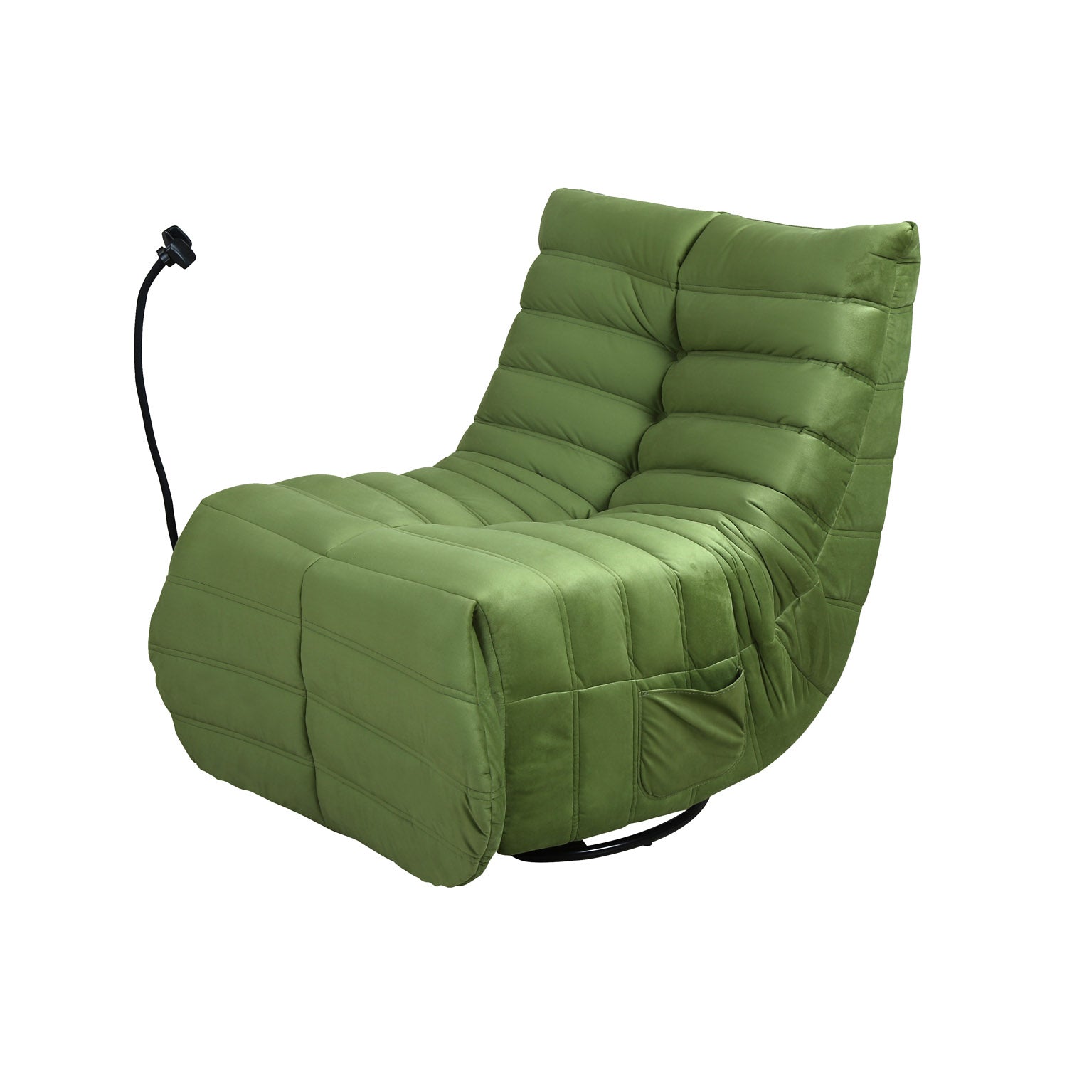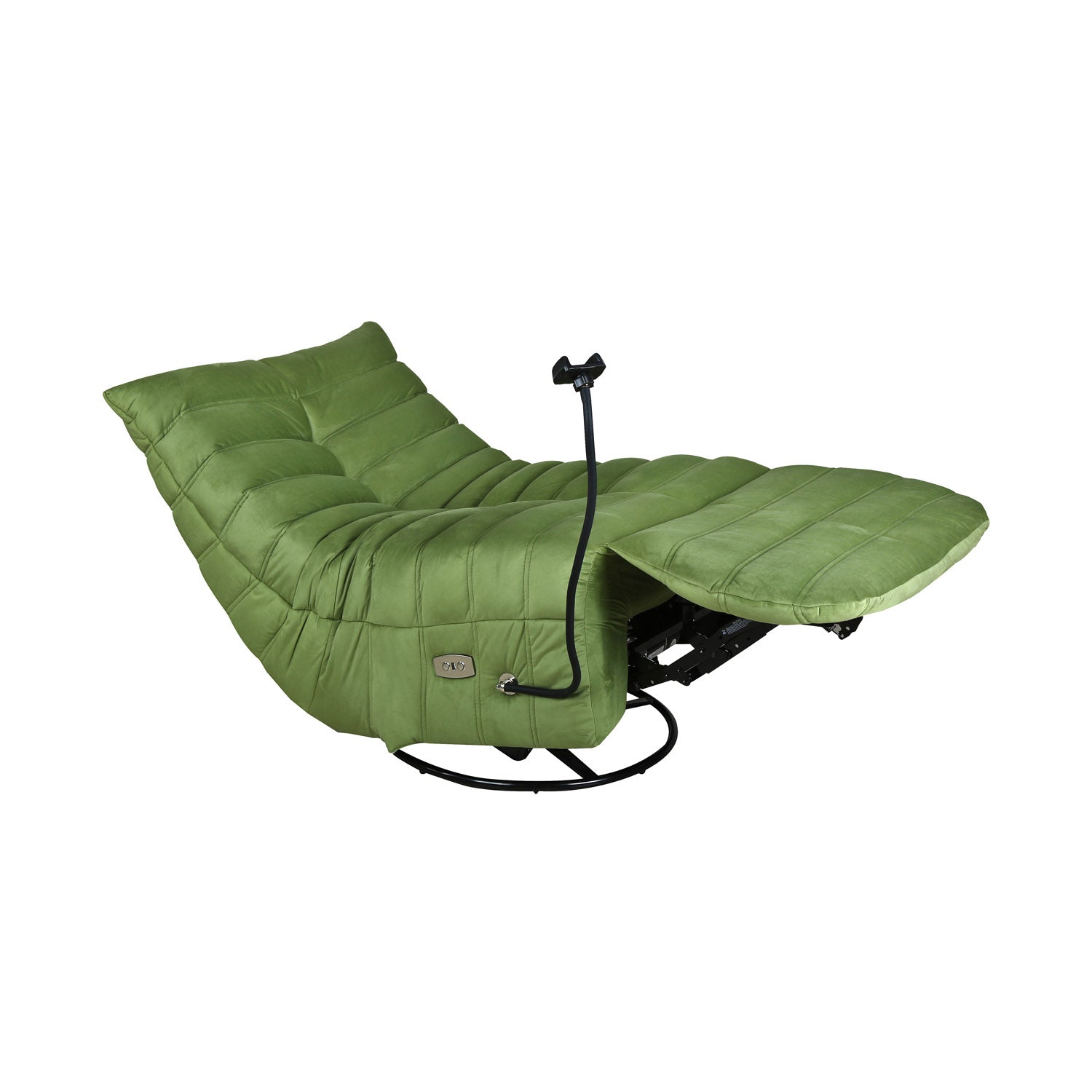 - Multi-functional recliner offers electric reclining, rocking, and swivel functions for maximum comfort