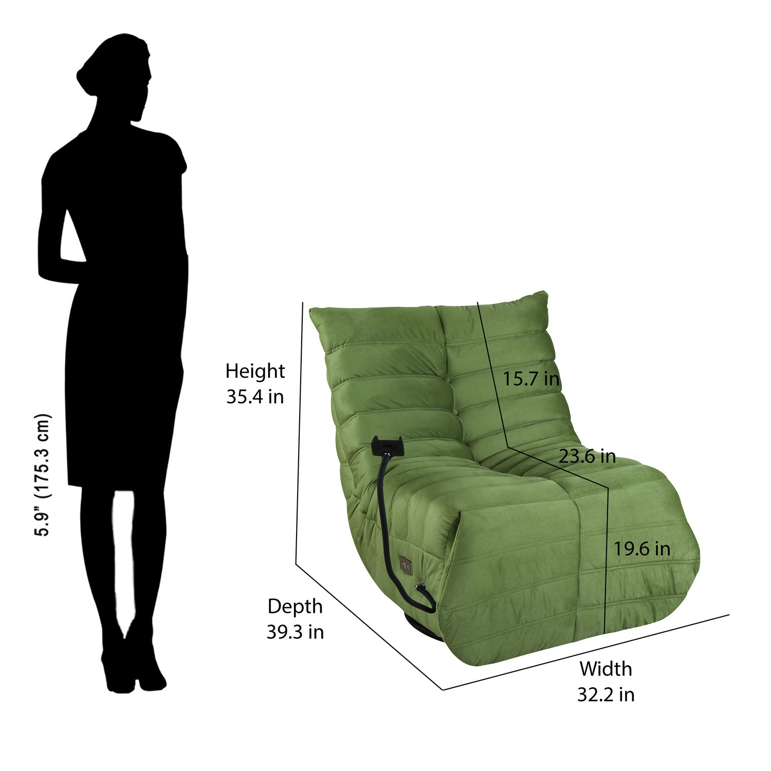 The Nilkamal Homes Adore Rocker Recliner blends style and functionality to elevate your living space. Its stylish leaf-like design with a contemporary silhouette enhances modern interiors with elegance. This multi-functional recliner offers electric reclining, rocking, and swivel functions, delivering maximum comfort and versatility. The innovative floating mobile holder adds hands-free convenience without compromising aesthetics. Designed for superior relaxation, it features plush cushioning that offers exceptional ergonomic support for long hours. Wrapped in premium olive velvet upholstery, it ensures durability, easy maintenance, and a soft, luxurious feel. Built with a sturdy MDF board and plywood frame, reinforced by a metal base, it guarantees lasting durability and structural strength.