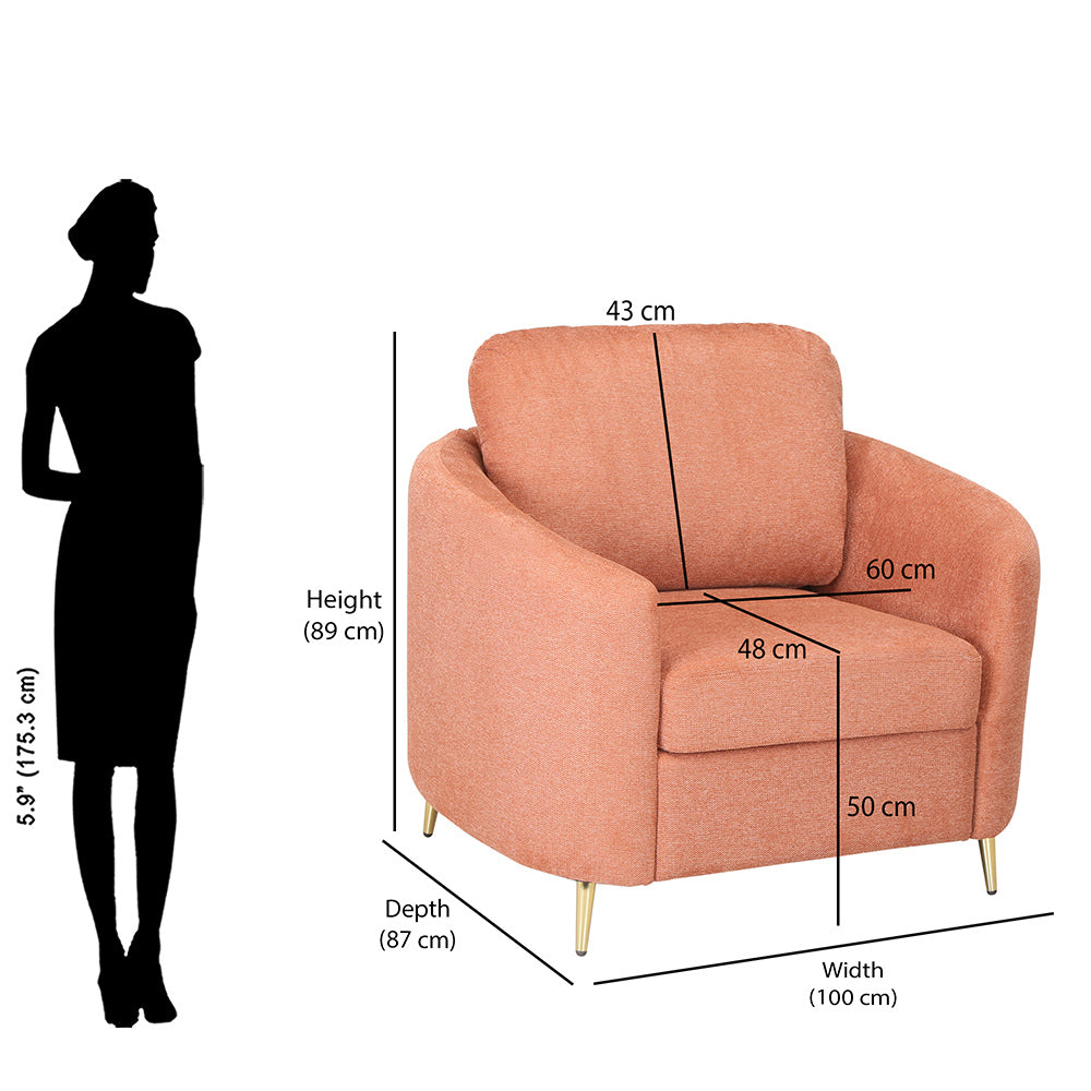 Arch 1 Seater Fabric Sofa- Rust
