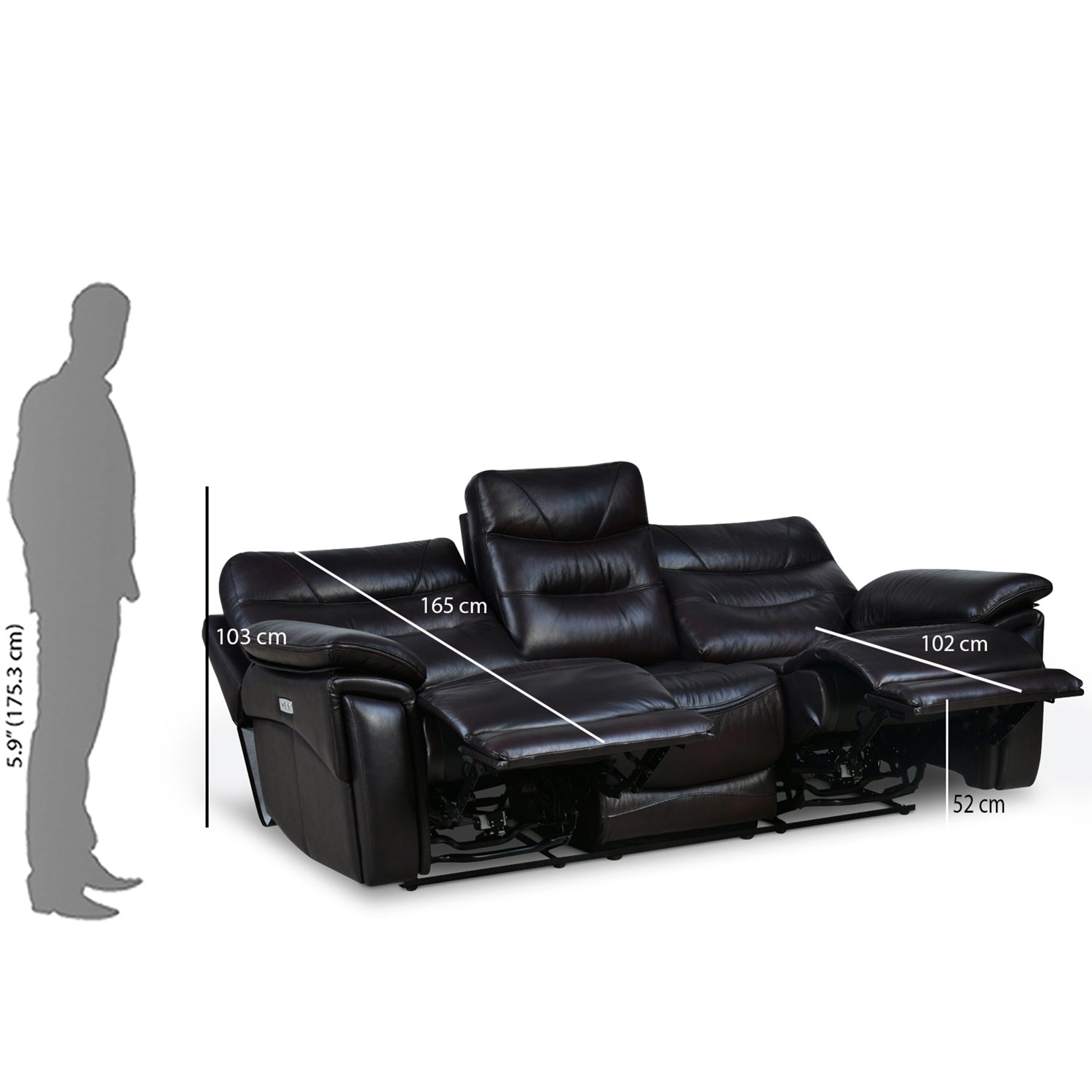 Bakewell 3 Seater Leather Electric Recliner (Brown)