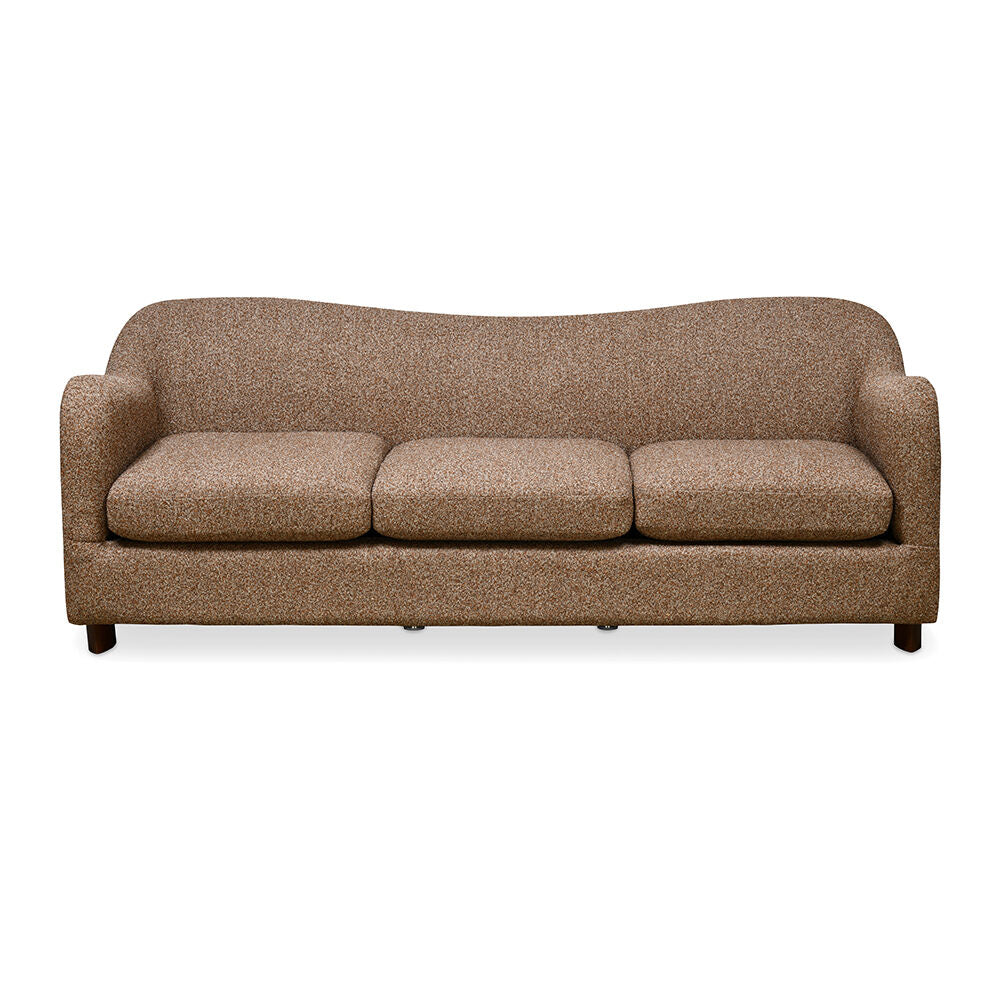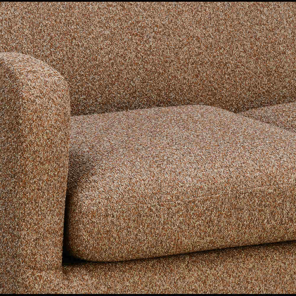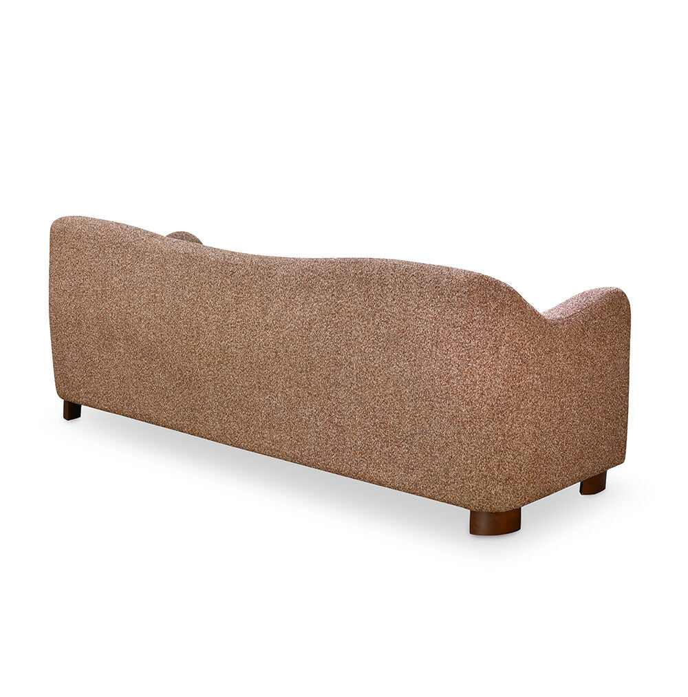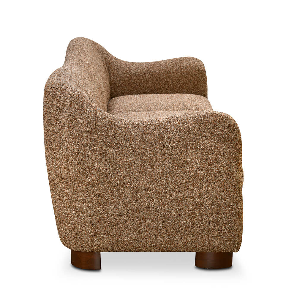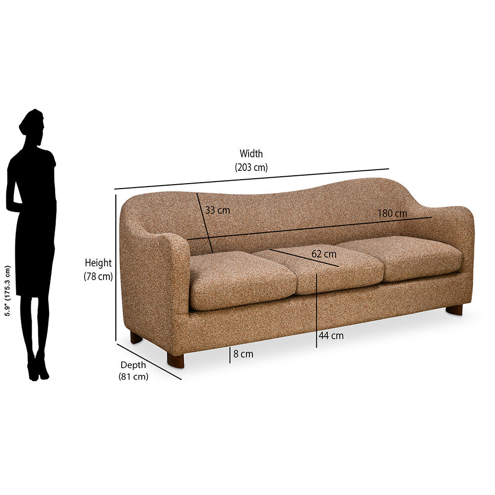 Arias by Lara Dutta Cherish 3-Seater Sofa is expertly crafted from durable pinewood and engineered wood, ensuring long-lasting usage. Its exquisite design features a beautiful curved pattern that elegantly wraps over the arms and the backrest, enhancing the visual appeal of your living area. The sofa is upholstered in luxurious boucle fabric, providing a comfortable and stylish seating experience. It boasts seats with double-layered foam, 3" webbing, and pocketed springs, offering exceptional comfort for you and your guests. Handcrafted hardwood legs with a matte finish complete the look, making this sofa an ideal choice for adding elegance and comfort to your home.