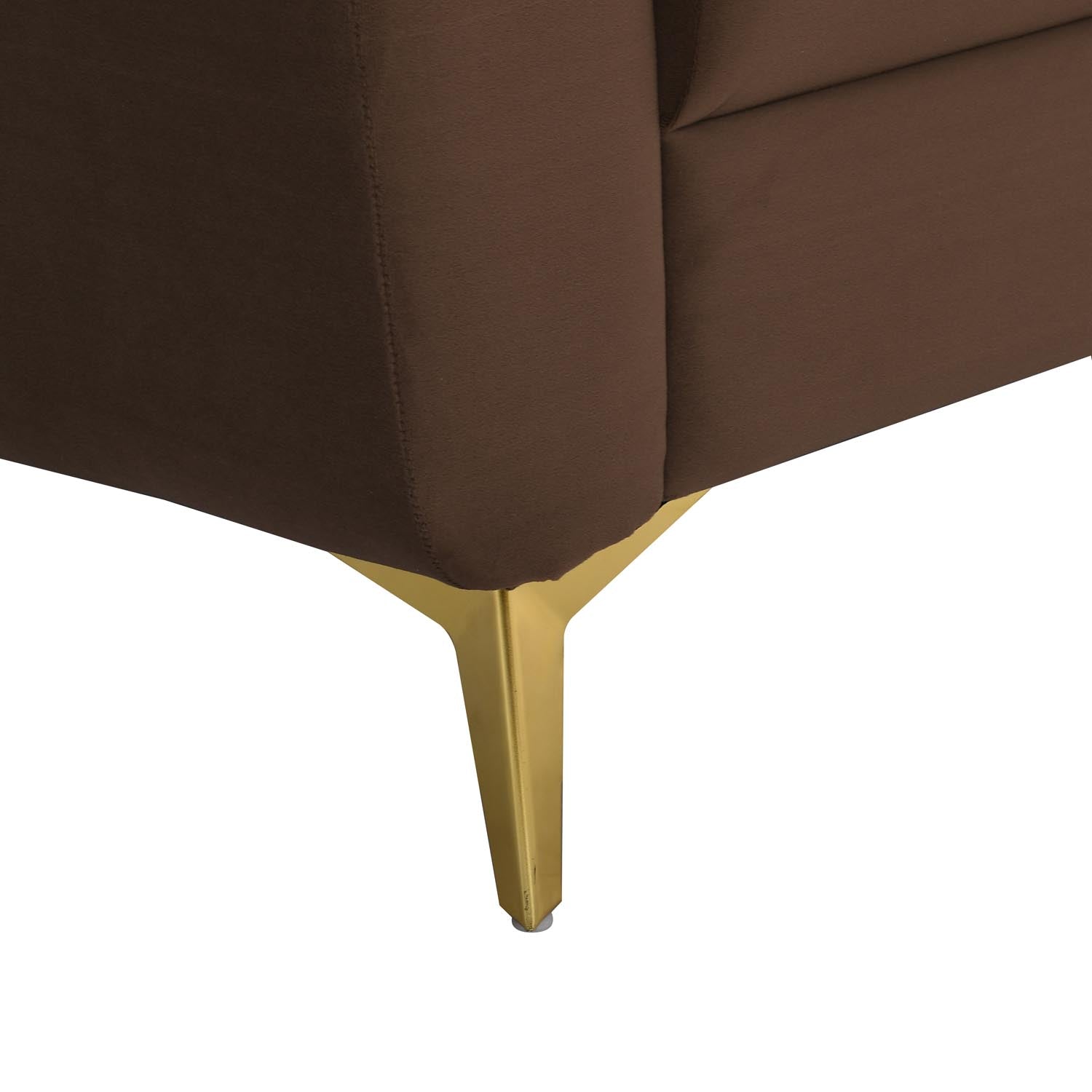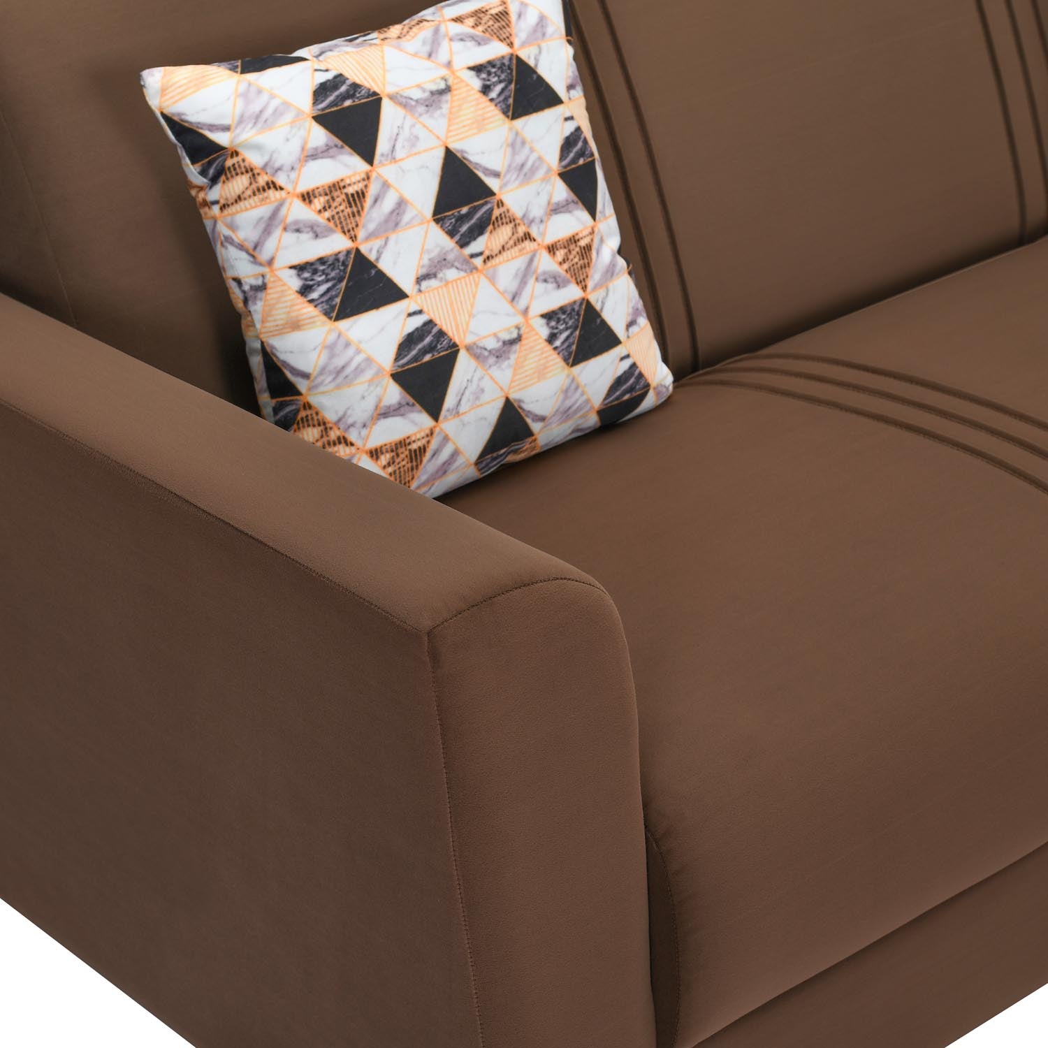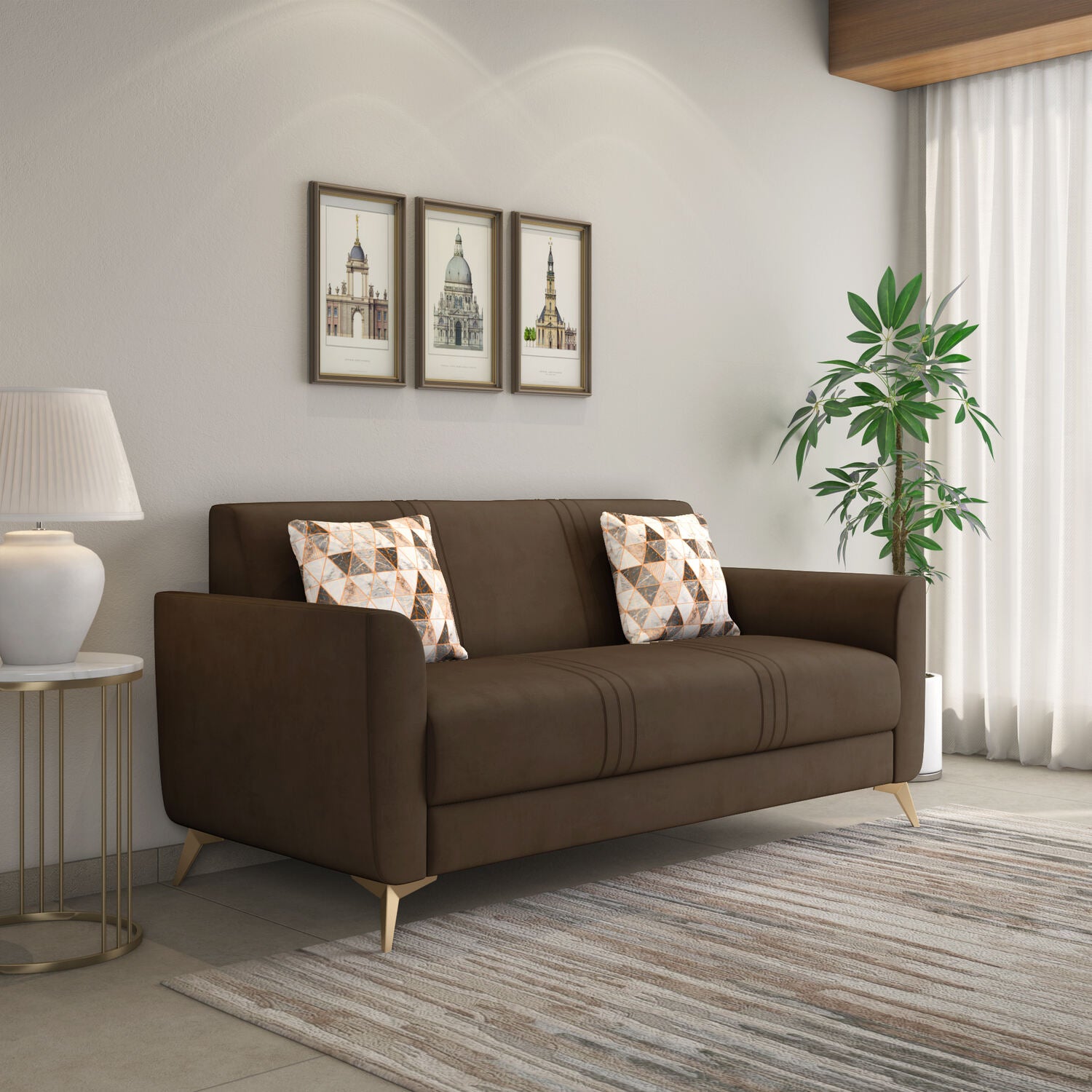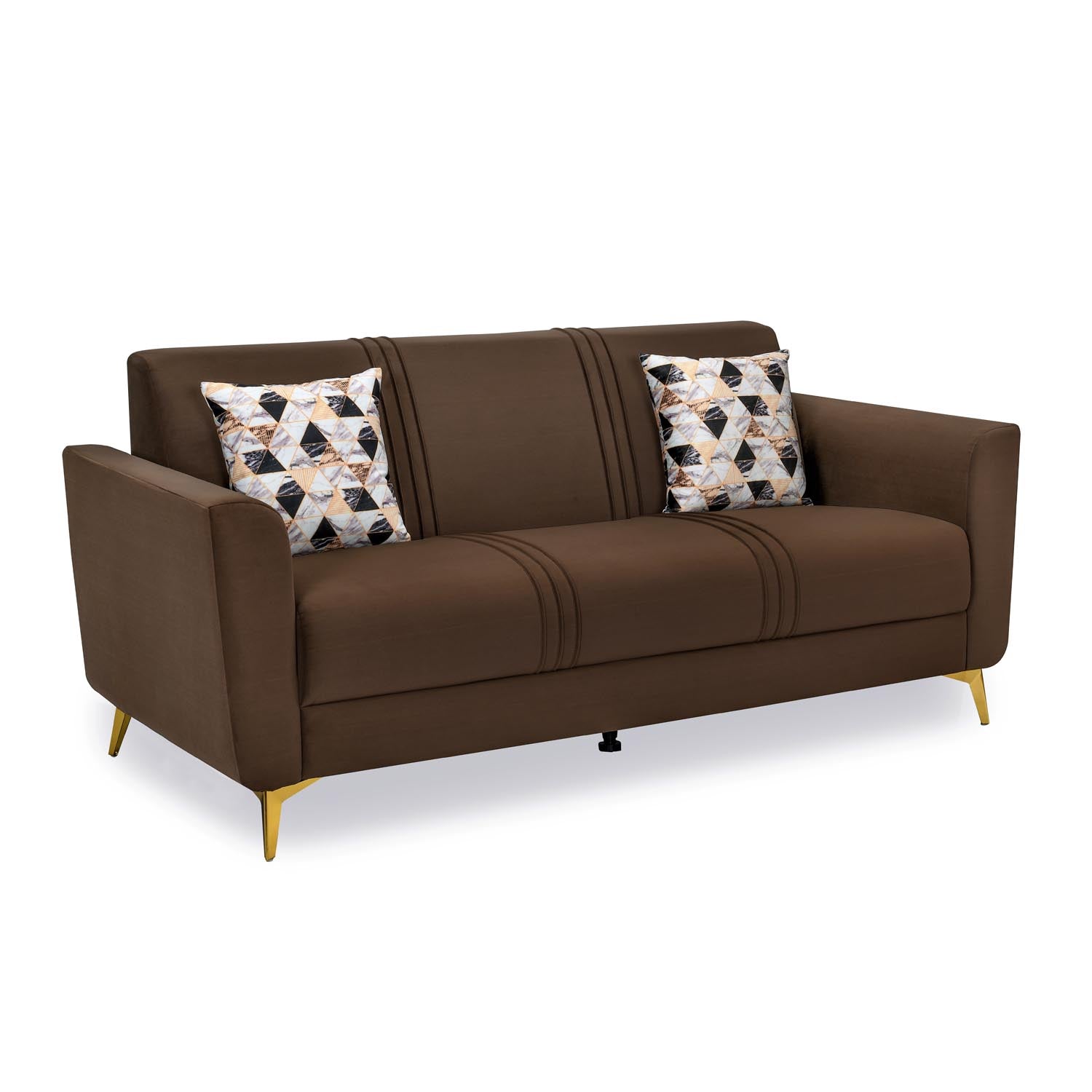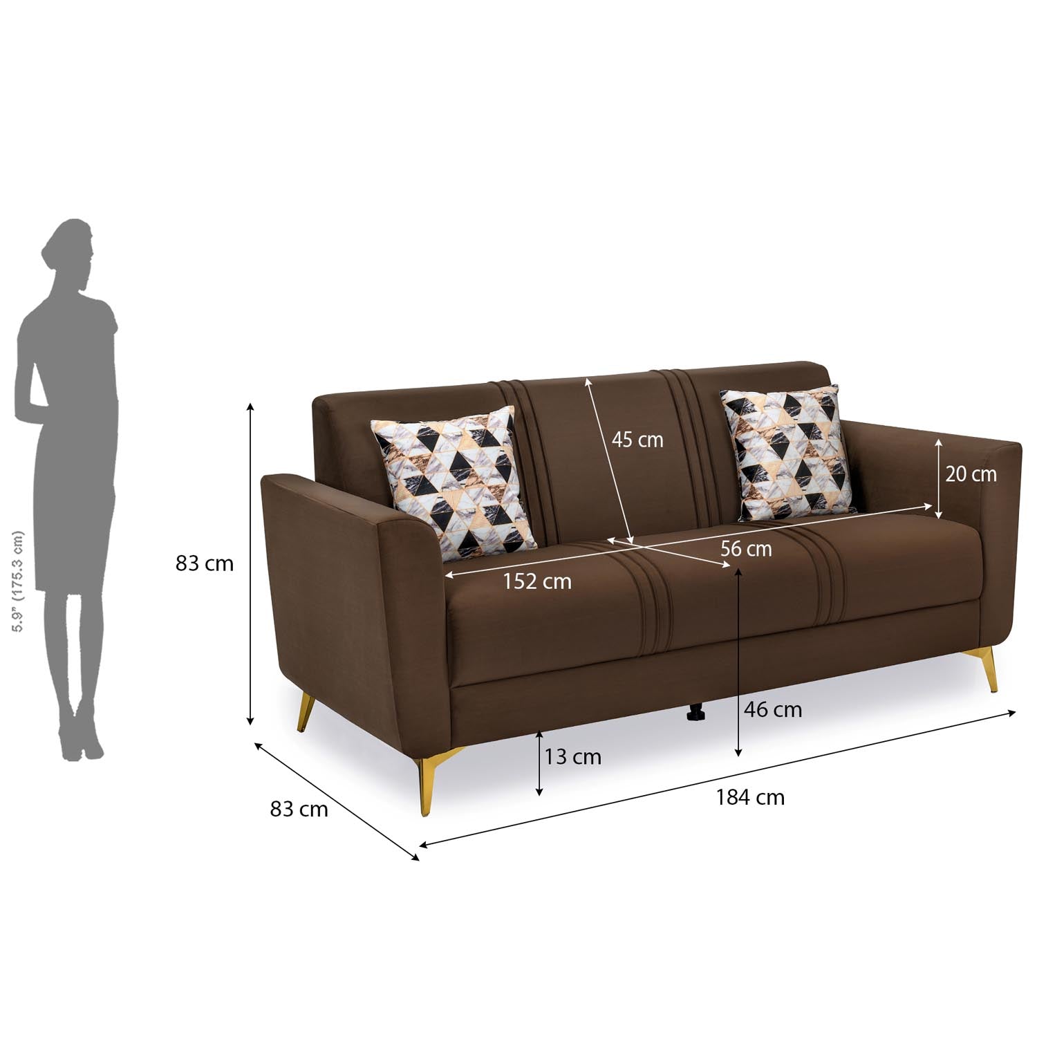 Nilkamal Homes' Cooper 3-Seater Sofa brings warmth and sophistication to your space with its rich brown tone, creating an earthy and inviting ambiance. The well-cushioned seat ensures perfect comfort, whether you're lounging or enjoying a quiet read. Upholstered in smooth, ultra-sheen polyester, it enhances the sofa’s natural charm while adding a touch of elegance. Sleek gold-finish metal legs provide a striking contrast to the earthy fabric, delivering a refined, upscale accent. Crafted with a solid pine wood and engineered wood base, the Cooper Sofa offers lasting strength and durability for everyday use. As a 3-seater, it delivers generous seating capacity, perfect for hosting guests or bringing the whole family together in comfort and elegance.