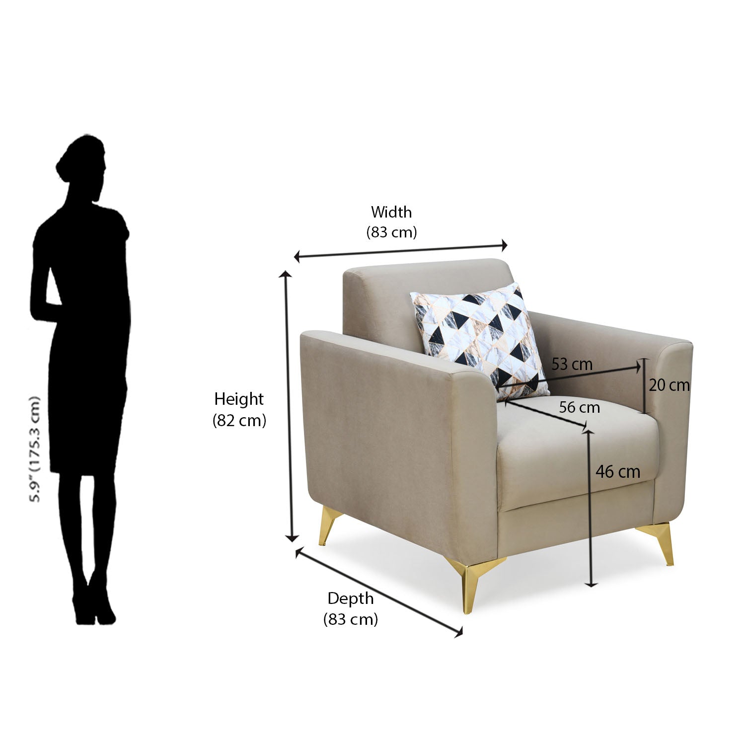 Cooper 1 Seater Fabric Sofa with Cushion- Beige