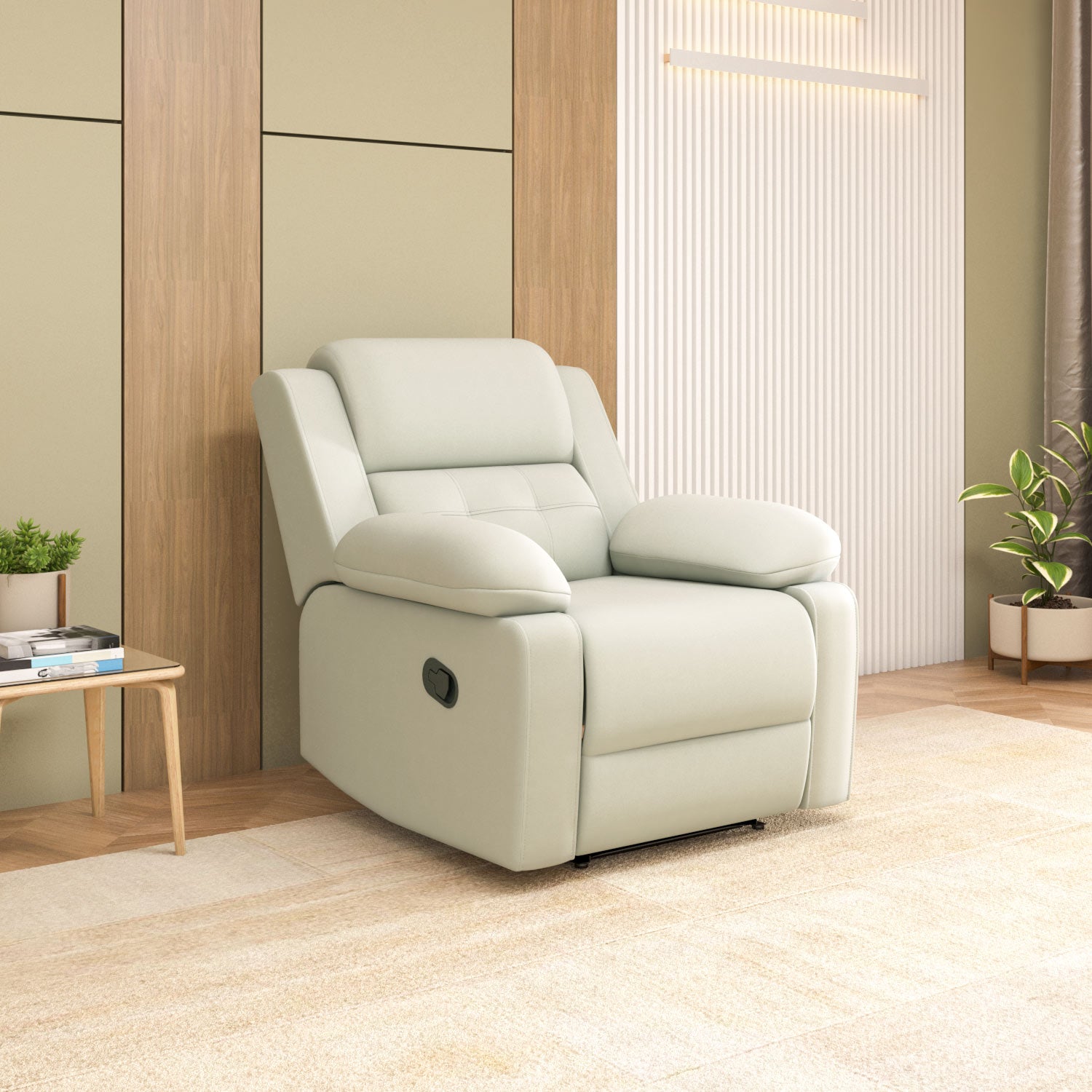 Derik 1 Seater Manual Recliner Sofa- Beige