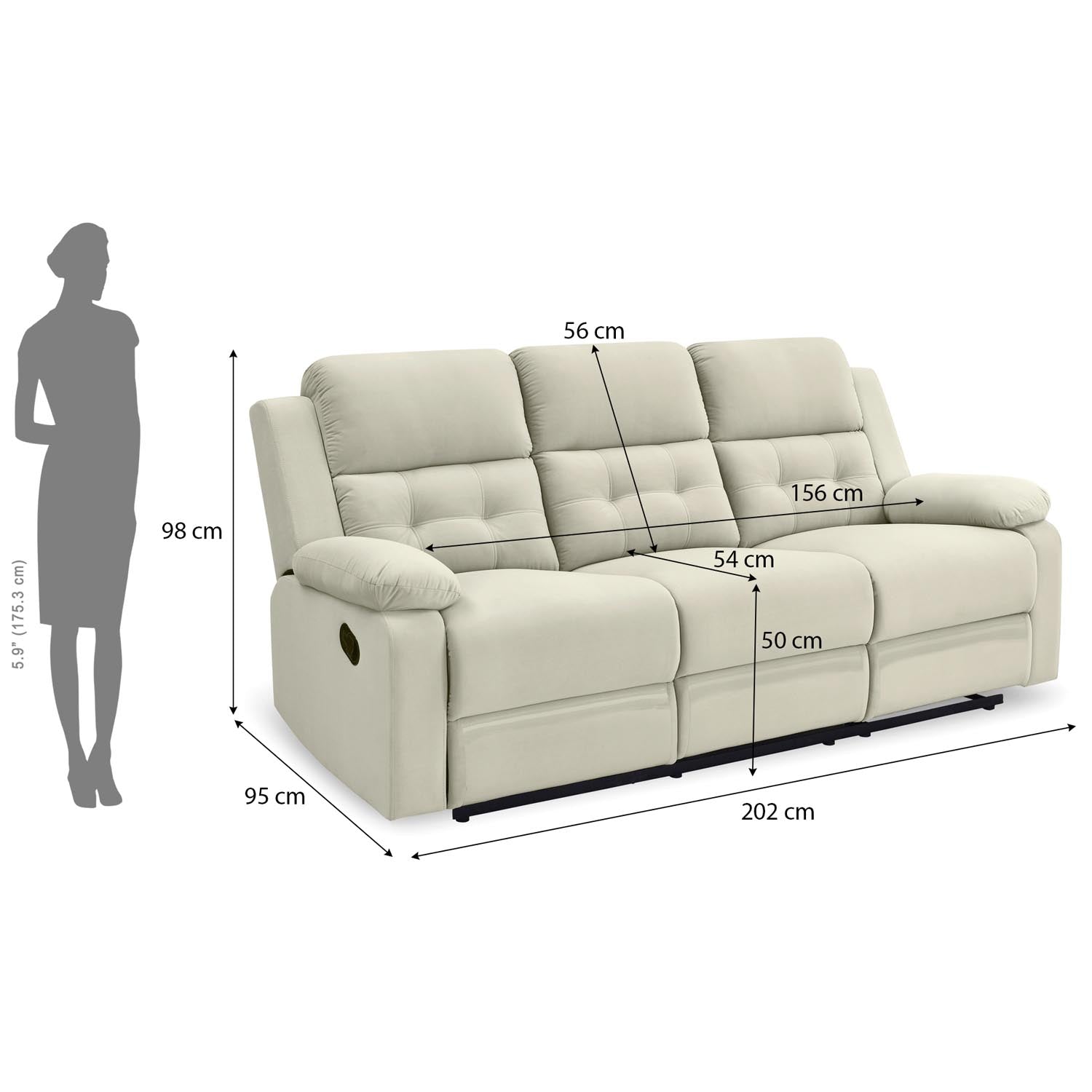 Derik 3 Seater Manual Recliner Sofa- Beige