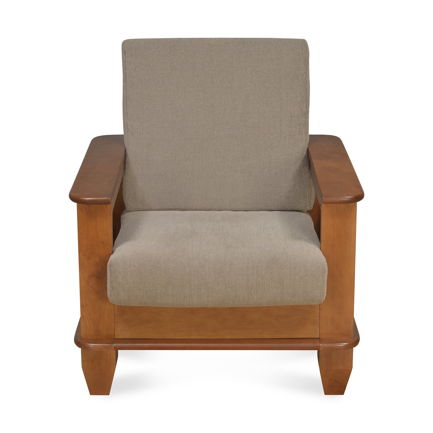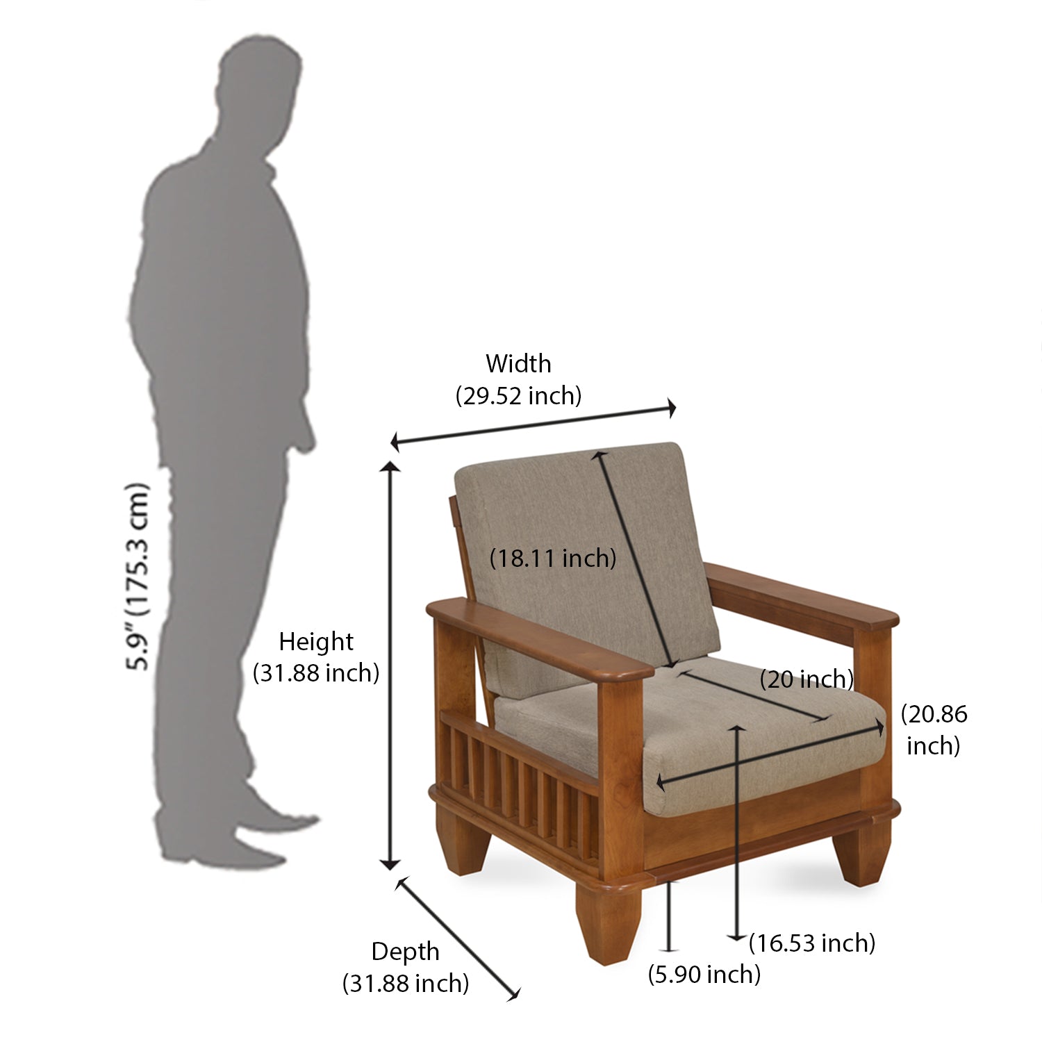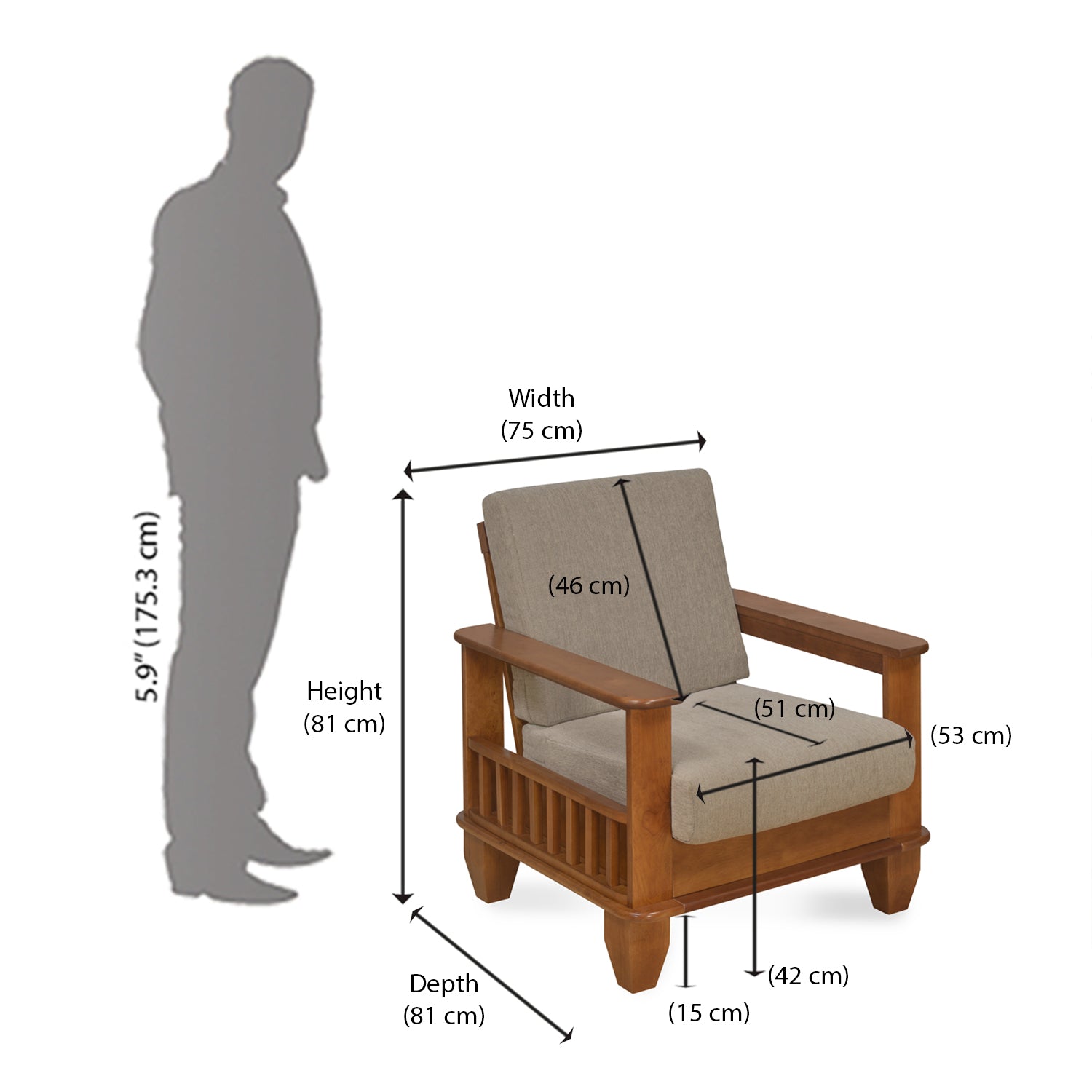 Part traditional, part modern, the Elena one seater sofa charms with its balanced style. Crafted with rubber wood, foam and fabric upholstery, the sofa has the right balance of design elements with a functional approach. Simple armrests are complemented with linear designs on the side, cushioned seating and a slanted cushioned backrest for extra comfort. Whether you want to place it by the coffee table to enjoy reading or in the living room in front of the television, it plays its role with easy and perfection. All you need to do is welcome it with a little space for it in your home.