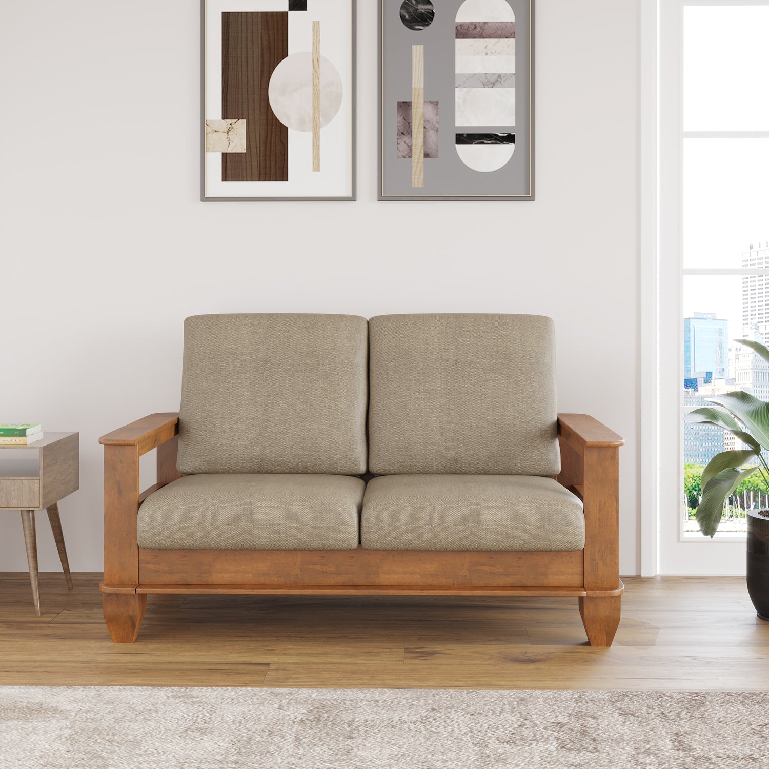 Part traditional, part modern, the Elena two seater sofa charms with its balanced style. Crafted with rubber wood, foam and fabric upholstery, the sofa has the right balance of design elements with a functional approach. Simple armrests are complemented with linear designs on the side, cushioned seating and a slanted cushioned backrest for extra comfort. Whether you want to place it by the coffee table to enjoy reading or in the living room in front of the television, it plays its role with easy and perfection. All you need to do is welcome it with a little space for it in your home.
