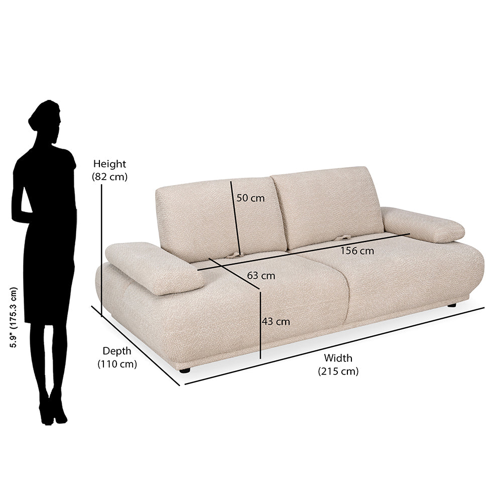 Fritzi 3 Seater Fabric Sofa (Beige)