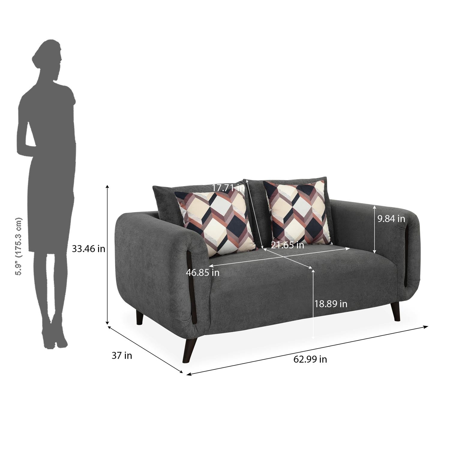 The Nilkamal Homes Harper 2-Seater Sofa brings modern elegance into your space with its sophisticated grey colour and softly curved design, complete with a cushioned backrest that enhances comfort. Upholstered in textured polyester bouclé fabric, it feels cosy and inviting. The armrests curve inward with a central wooden strip, while the PVC legs in wooden finish match the detailing, giving the sofa a balanced and elegant look. A patterned throw cushion adds visual interest, and the structure is crafted from pine wood and engineered wood to ensure long-lasting durability, making the 2-seater perfect for small living rooms, compact lounges, or stylish apartment spaces.