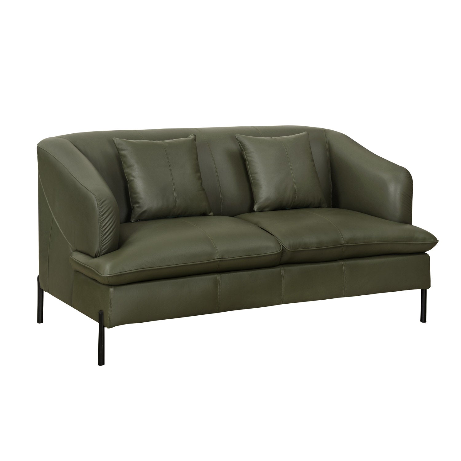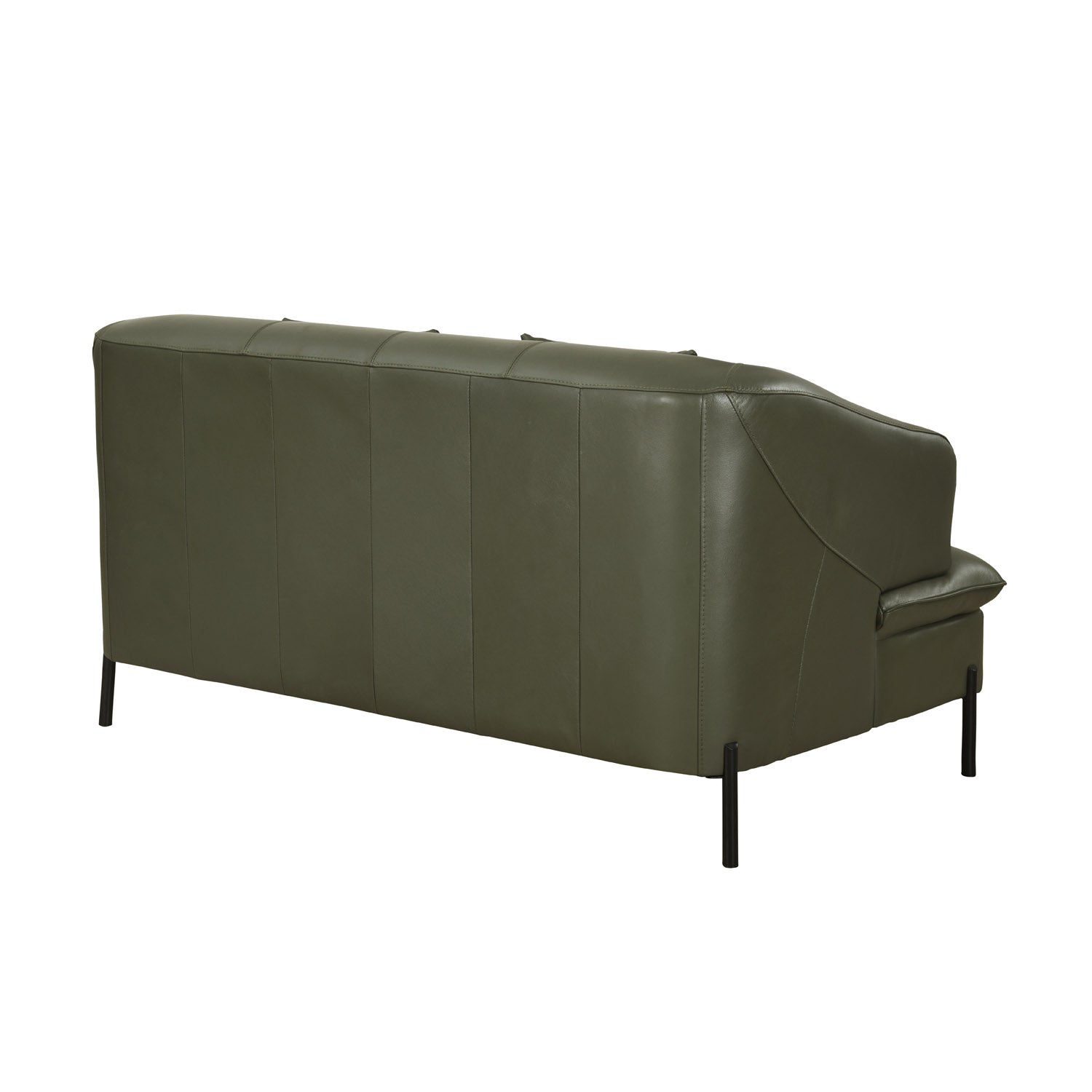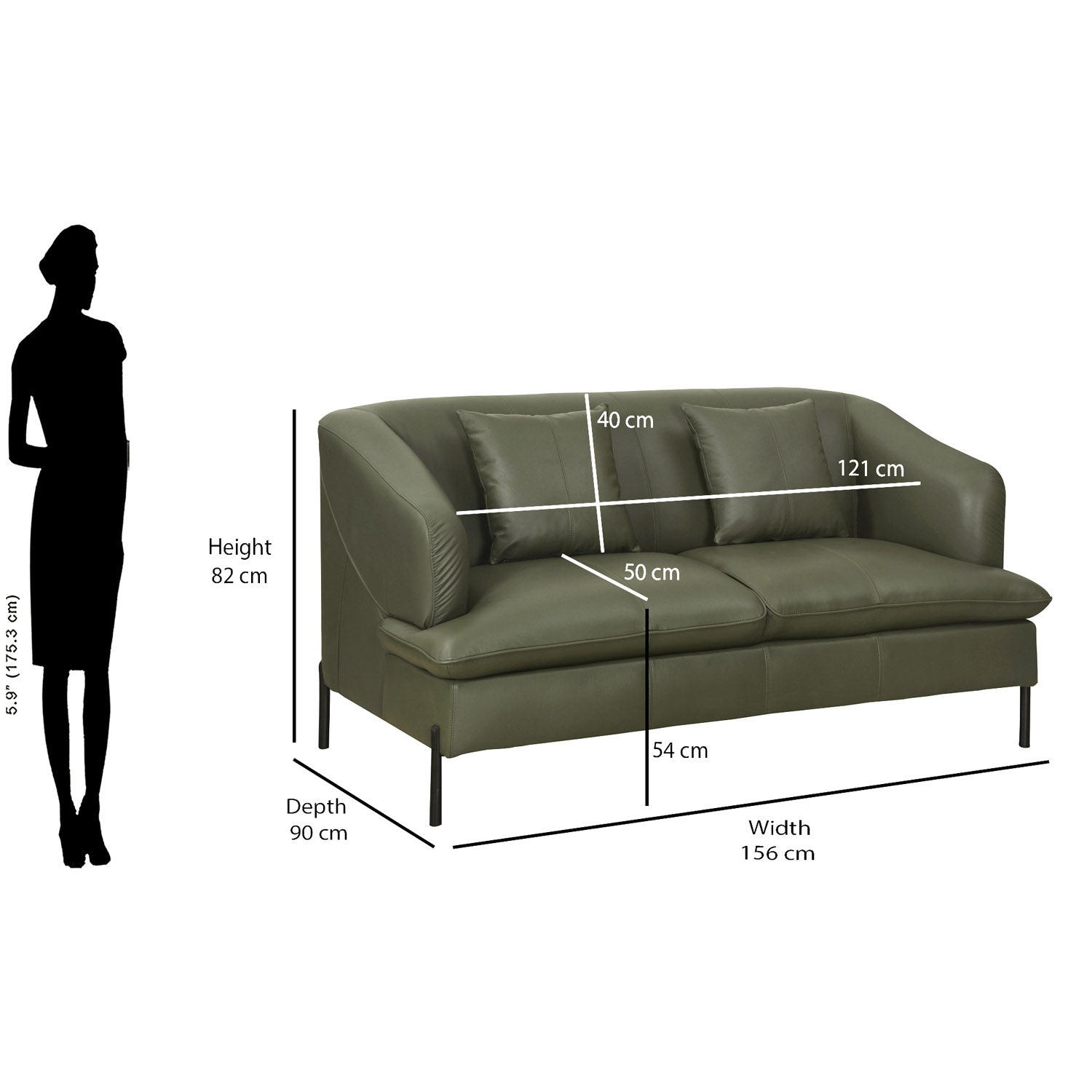 The Nilkamal Homes Modena 2-Seater Sofa adds a refined touch to your decor with its sleek silhouette and sophisticated dark green shade. Its plush pillow-top cushions provide exceptional comfort, reducing strain and promoting a relaxed seating posture. The elegantly curved back and armrests create a cocoon-like seating experience, offering style and functionality. Upholstered with genuine leather on seating areas, it provides a luxurious feel, while the durable PVC on the sides and back ensures easy maintenance. The sturdy mahogany and engineered wood frame and powder-coated metal legs enhance stability, making this sofa a stylish and long-lasting addition to any room. Its 2-seater design is perfect for compact spaces, whether placed in a reading nook, office or as an accent piece in your living space.