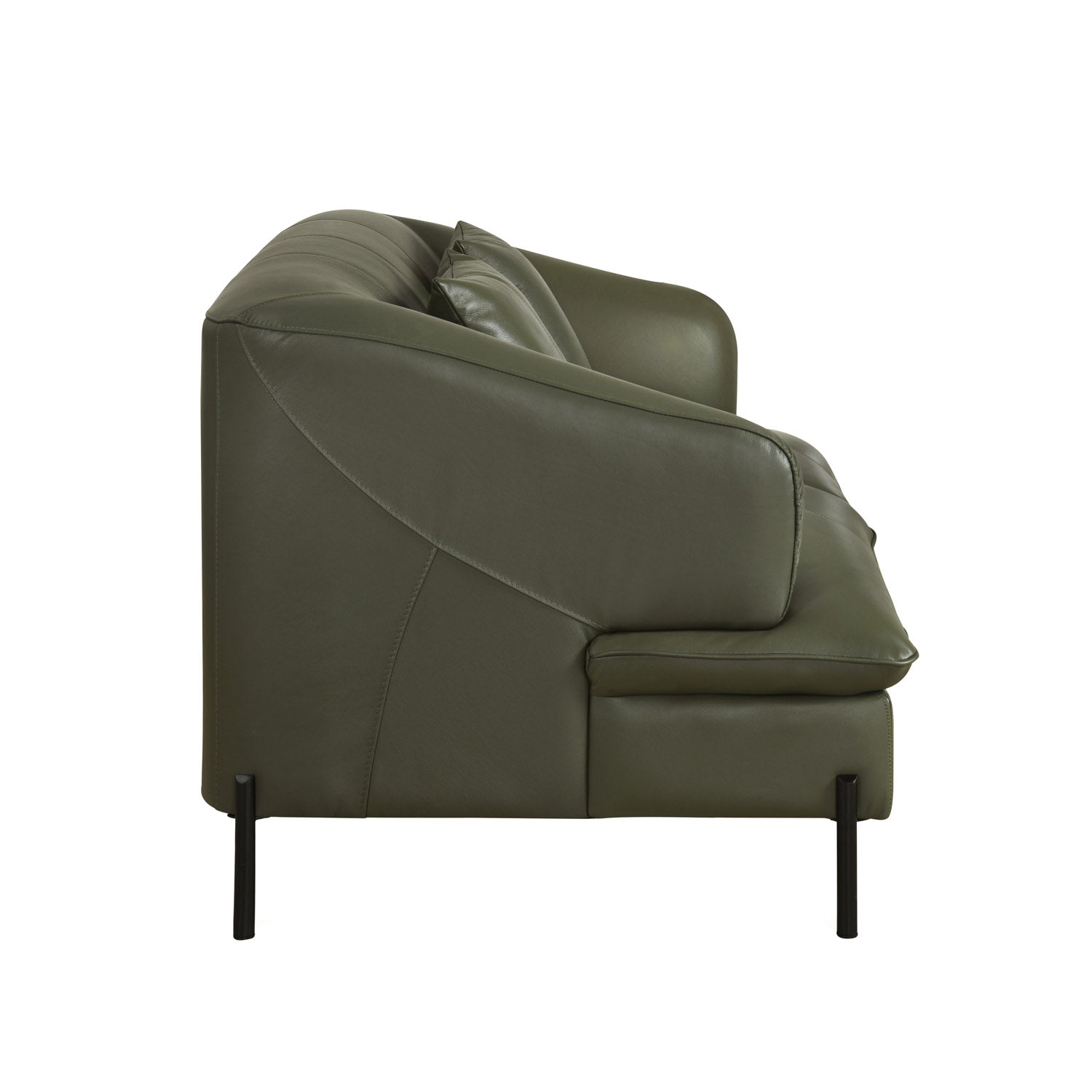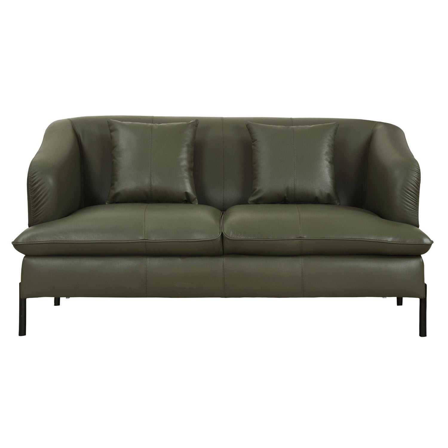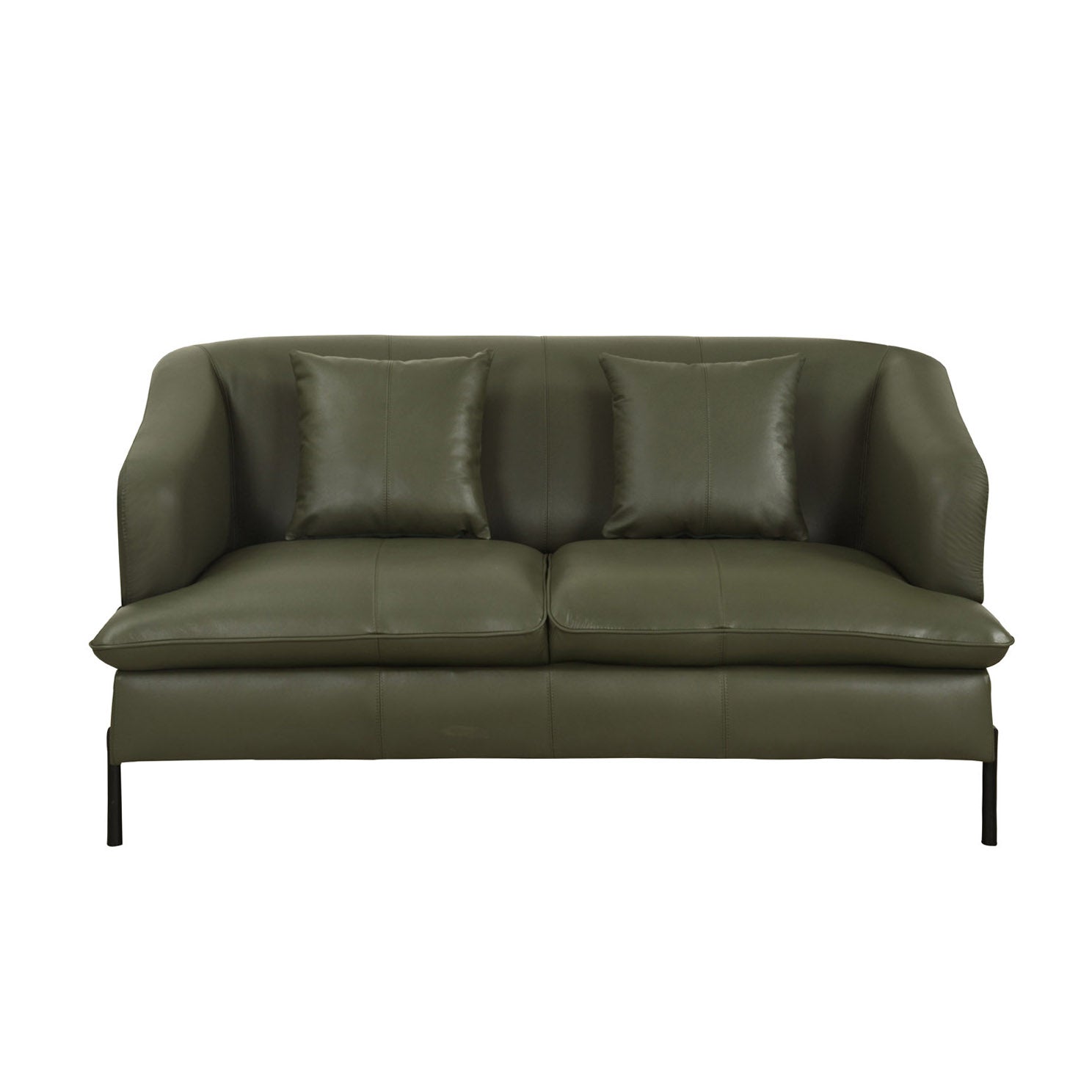 The Nilkamal Homes Modena 2-Seater Sofa adds a refined touch to your decor with its sleek silhouette and sophisticated dark green shade. Its plush pillow-top cushions provide exceptional comfort, reducing strain and promoting a relaxed seating posture. The elegantly curved back and armrests create a cocoon-like seating experience, offering style and functionality. Upholstered with genuine leather on seating areas, it provides a luxurious feel, while the durable PVC on the sides and back ensures easy maintenance. The sturdy mahogany and engineered wood frame and powder-coated metal legs enhance stability, making this sofa a stylish and long-lasting addition to any room. Its 2-seater design is perfect for compact spaces, whether placed in a reading nook, office or as an accent piece in your living space.