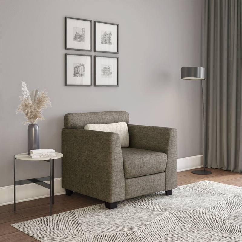 Svelte Plus 1 Seater Fabric Sofa with Cushion- Dark Brown