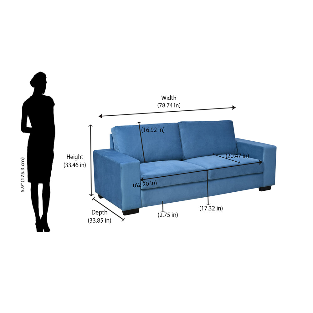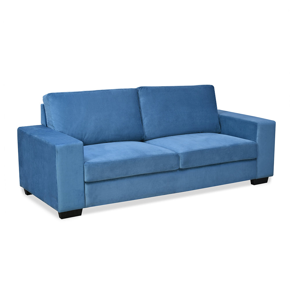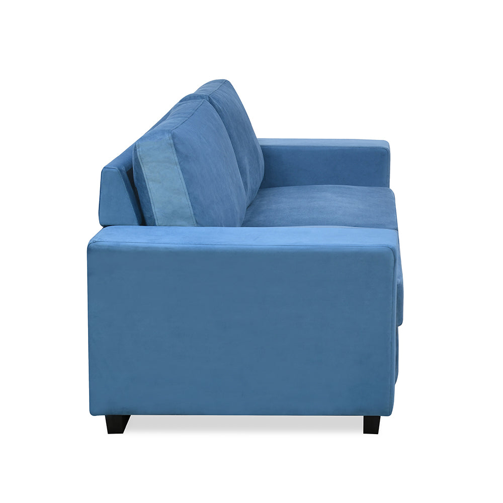 Give your guests a warm welcome with the simplistic yet elegant Shirley sofa from Nilkamal. This opulent three-seater sofa strikes a perfect balance between support and comfort, making long conversations with family and friends all the more enjoyable. Shirley's strength comes from sturdy solid wood and an engineered wood frame at its core, which keeps the sofa firmly in place. The luxurious layers throughout the Shirley Sofa make sitting a relieving and relaxing experience. The seat is supported by a sturdy MDF base, 30-kg foam, and pocket springs to keep the seater comfortable. Its back is just as comfortable, with 28 kg of foam and S springs providing supportive bounce to ease your back. The sophisticated blue-coloured, 270-gsm-soft fabric on top offers a soothing touch that will make you want to stay seated on the couch for a while more. Some homes don't require an extravagant couch; instead, they require a lovely sofa that makes sitting relaxing while adding to the overall beauty of the space. If your home needs such an upgrade, the Shirley 3-Seater Sofa is for you.