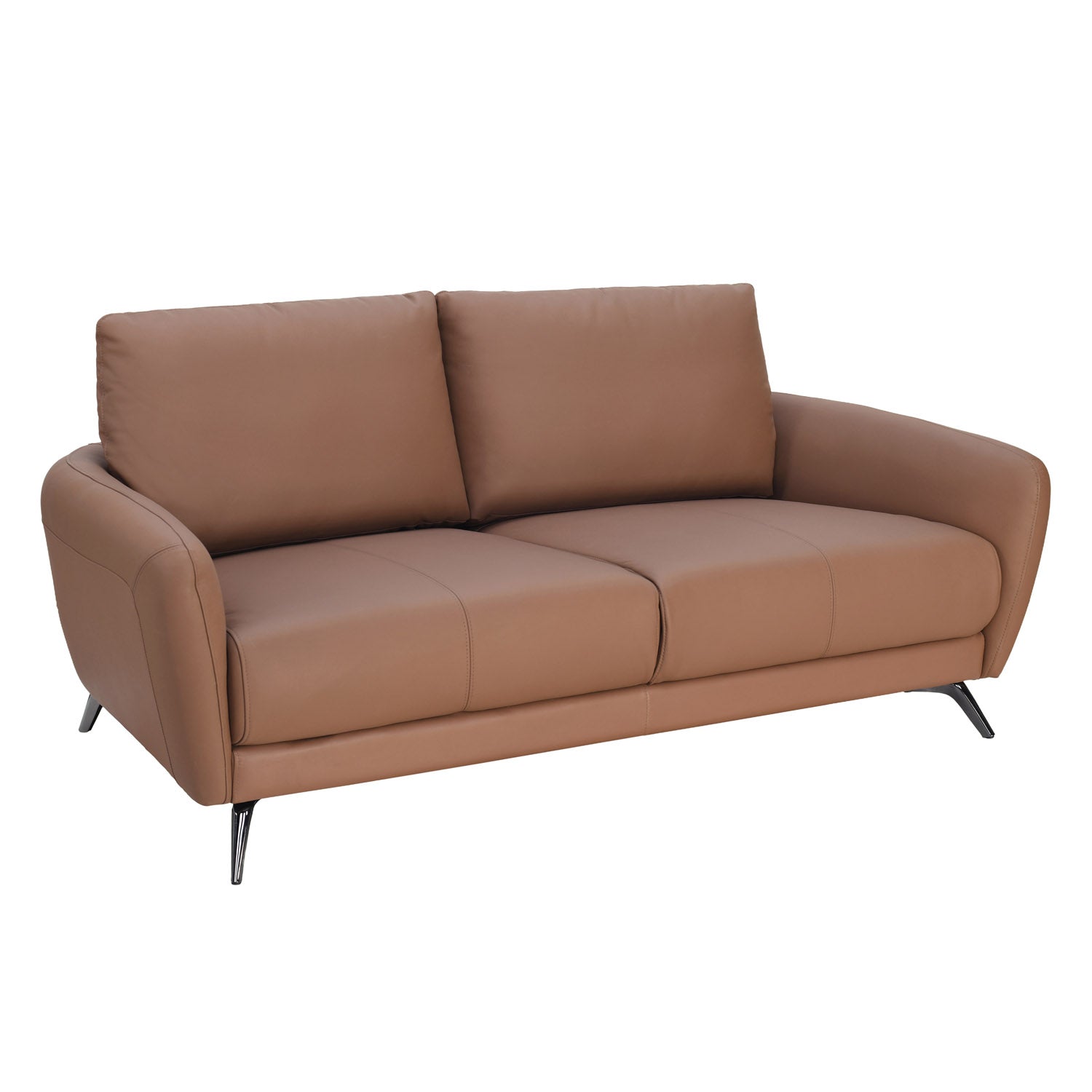 The Nilkamal Homes Tanis 3-Seater Sofa blends clean design with inviting comfort. Its streamlined shape adds a modern edge to any room, while the generous seat depth and plush cushioning support a relaxed posture. Curved armrests follow the body's natural contours, and the seat’s firmness offers a gentle resilience perfect for unwinding. With a strong frame made from pine and engineered wood, and finished with dark chrome pelted legs, this piece is both solid and stylish. The premium leather surface provides a refined touch, while the PVC exterior ensures easy upkeep. Its 3-seater design makes it an excellent choice for families or entertaining guests in style.