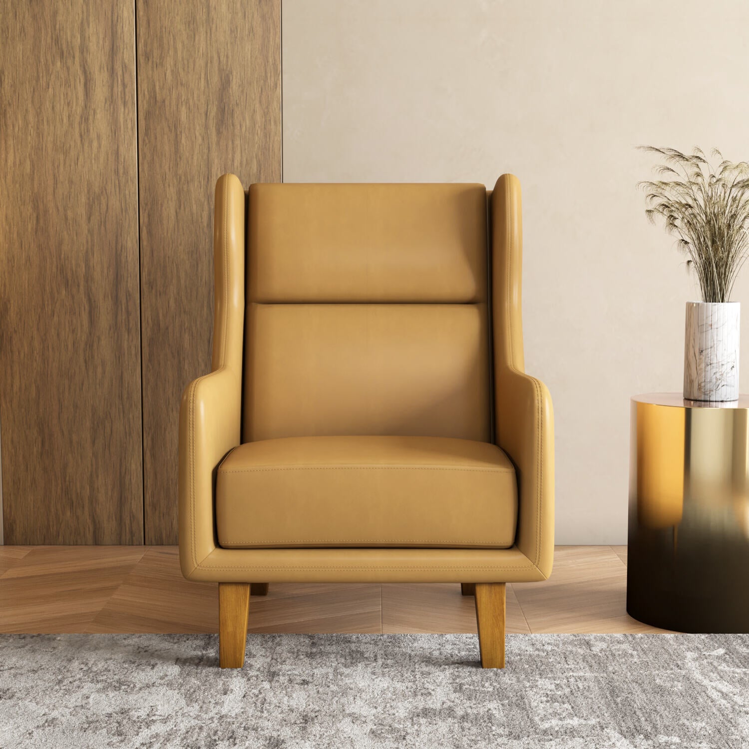 The Nilkamal Homes Tuscany 1-Seater Arm Chair brings a sleek, modern silhouette to your space with its clean lines and refined tufted detailing. Its high-resilience cushioned seat and ergonomic backrest offer exceptional support and relaxation, making it ideal for solo seating. The solid wood tapered legs enhance its aesthetic appeal and provide robust stability. Upholstered in luxurious genuine leather, this armchair ensures durability and everyday comfort. Built with a sturdy mahogany and engineered wood frame, it guarantees lasting support, making it a stylish and reliable accent piece for your living room.