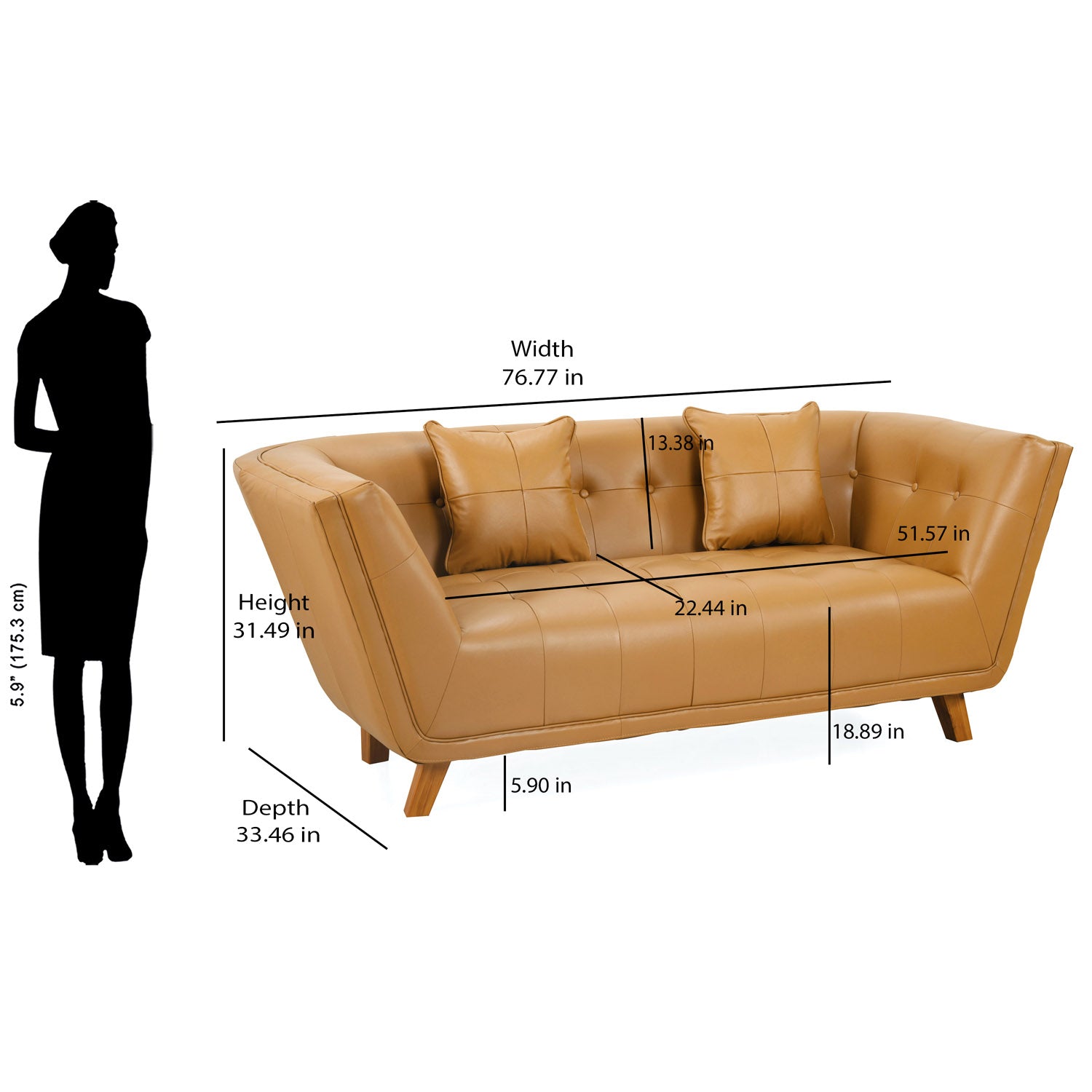 - Solid wood tapered legs enhance the sofa’s aesthetic appeal while providing robust stability