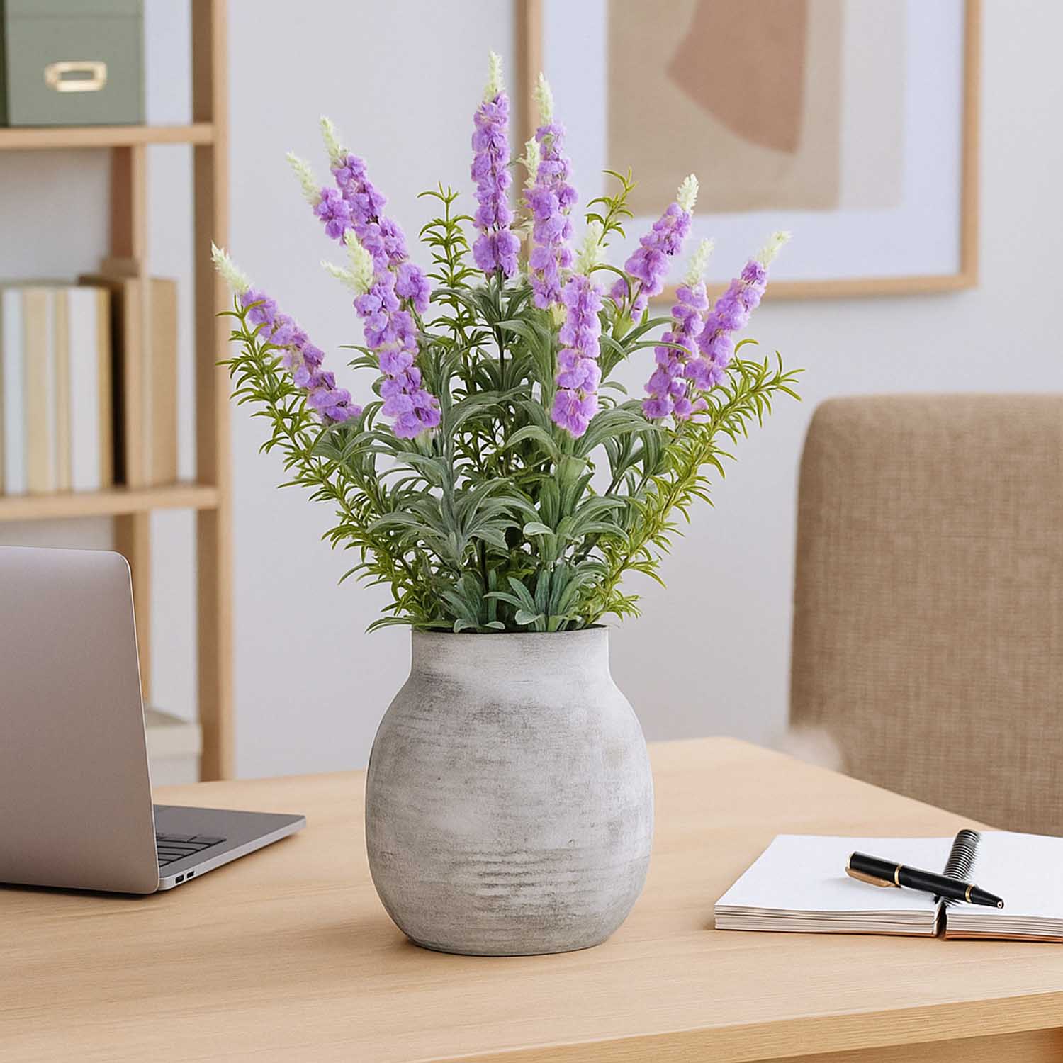 Bring a soothing vibe to your space with the Nilkamal Homes Potted Plant. Designed to mimic the natural look and feel of real lavender, this plant enhances any room with its calming charm. It comes pre-arranged in a minimalist pot that blends effortlessly with various interior styles. Crafted from durable PE and paper mache, the plant ensures long-lasting beauty without the need for watering or upkeep. Ideal for living rooms, offices, hallways, or reception areas, this low-maintenance decor piece lets you enjoy the freshness of greenery without the hassle.