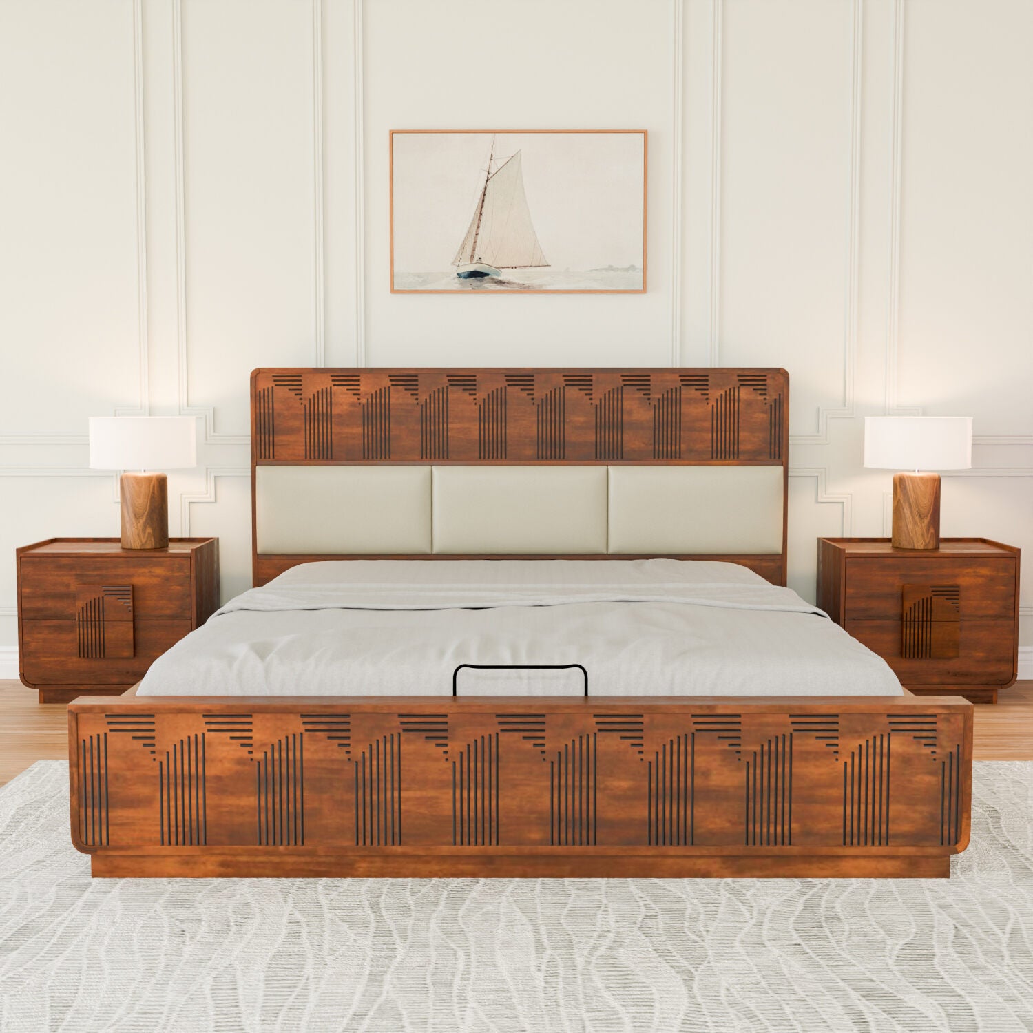 Albury Solid Wood King Bed with Hydraulic Storage- Antique Cherry
