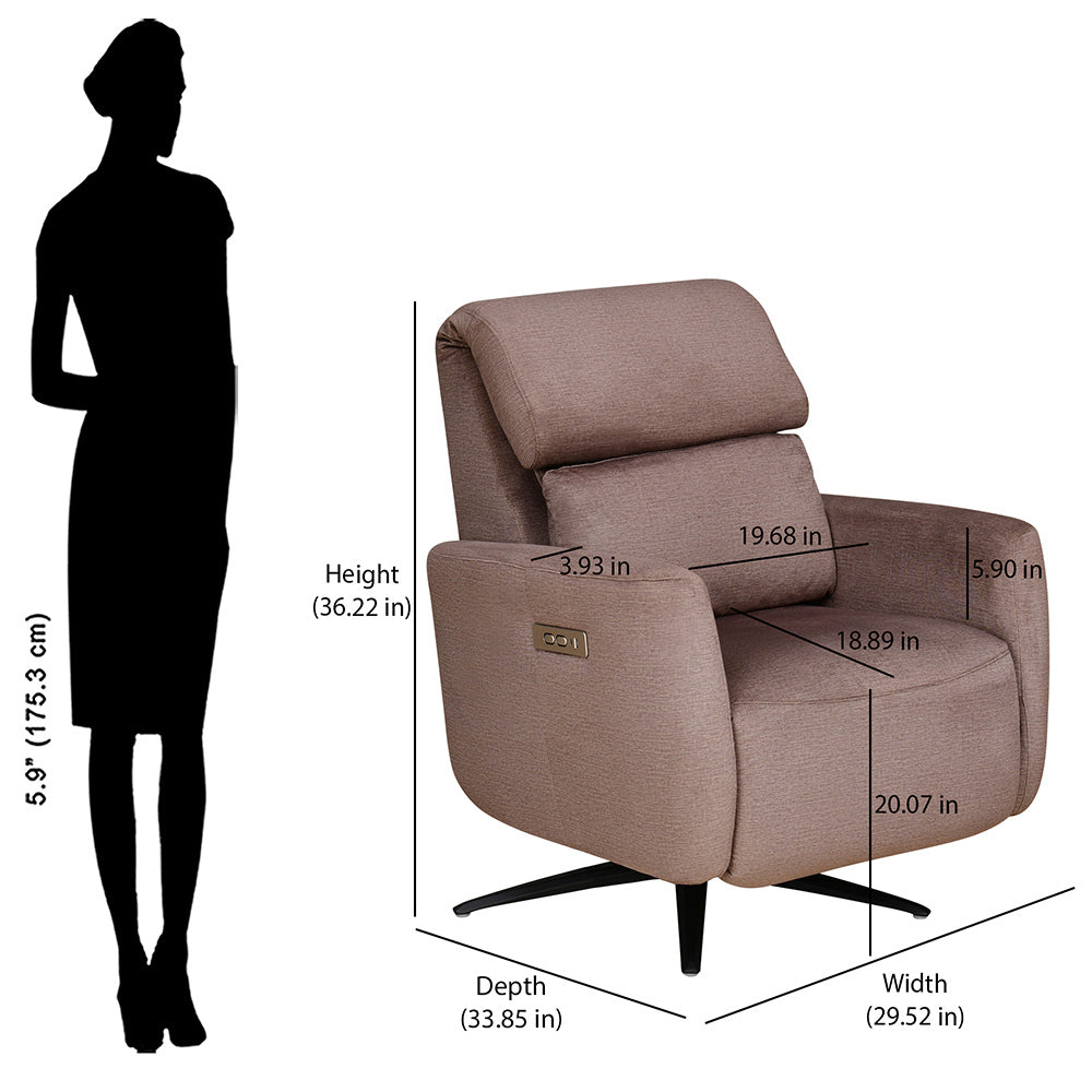 The Nilkamal Homes Archie Recliner elevates your comfort with its dual motor swivel, giving you independent control of the footrest and backrest for a relaxed seating experience. Adjust the foldable backrest to your preference, with options for a high back and headrest or mid back with lumbar support. The switch panel includes both C-type and regular USB ports for convenient charging. This recliner's durable pinewood and engineered wood build ensure long-lasting durability, while the high-quality polyester fabric adds sophistication to your living space.