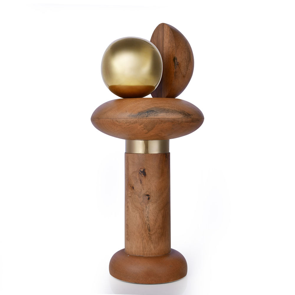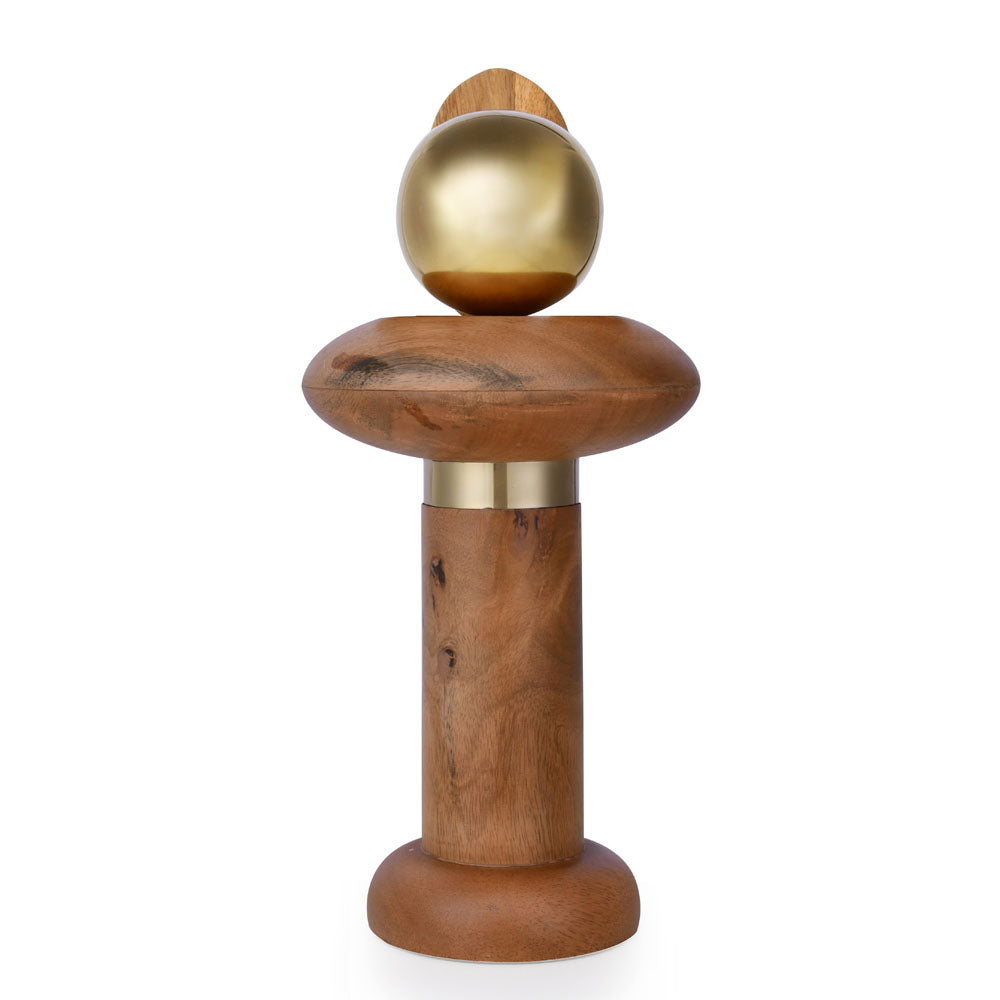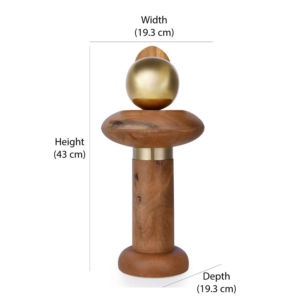 Ball On Pillar Table Decor Showpiece (Large, Brown & Gold)