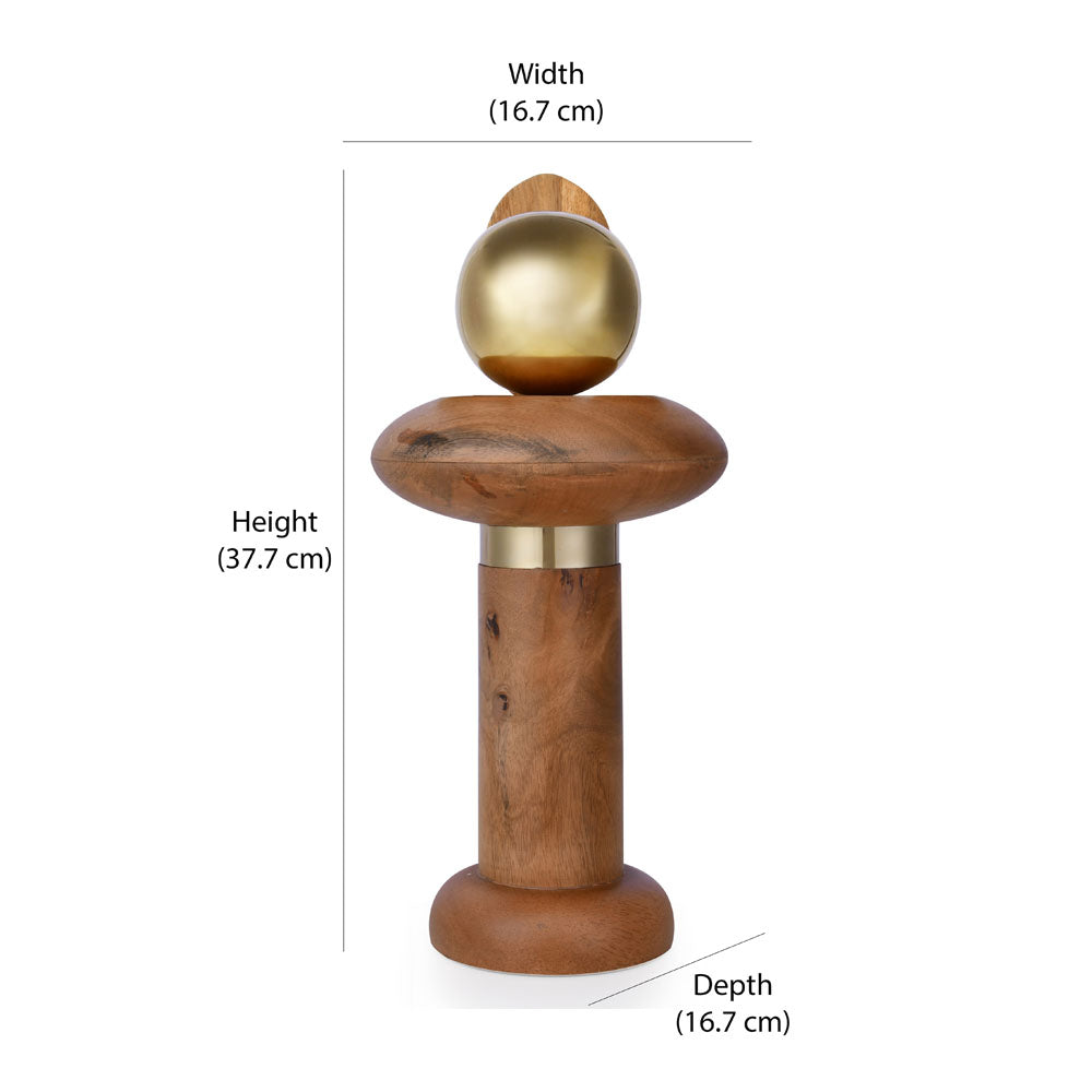 Ball On Pillar Table Decor Showpiece (Small, Brown & Gold)