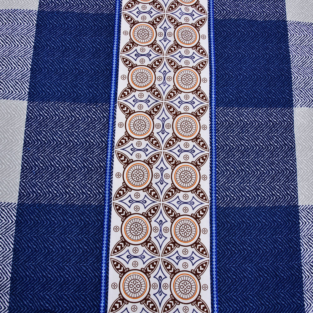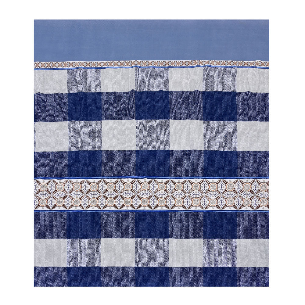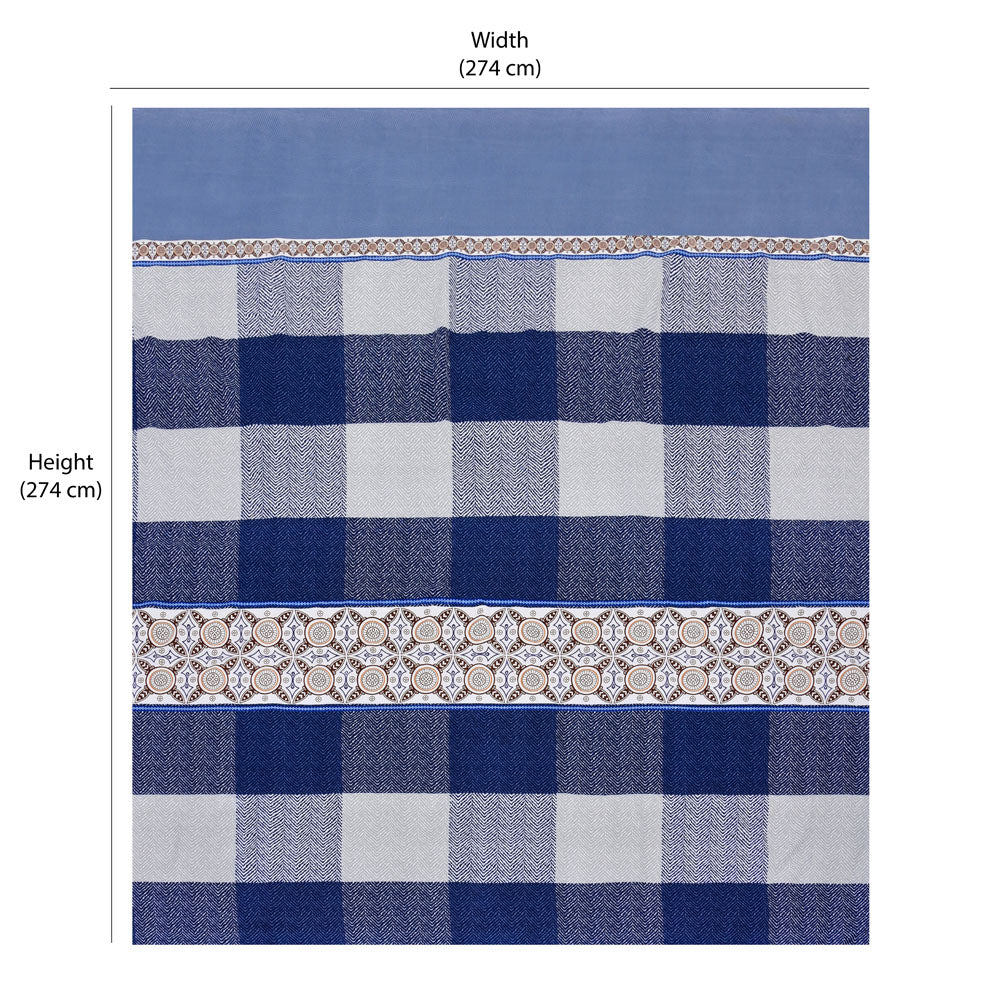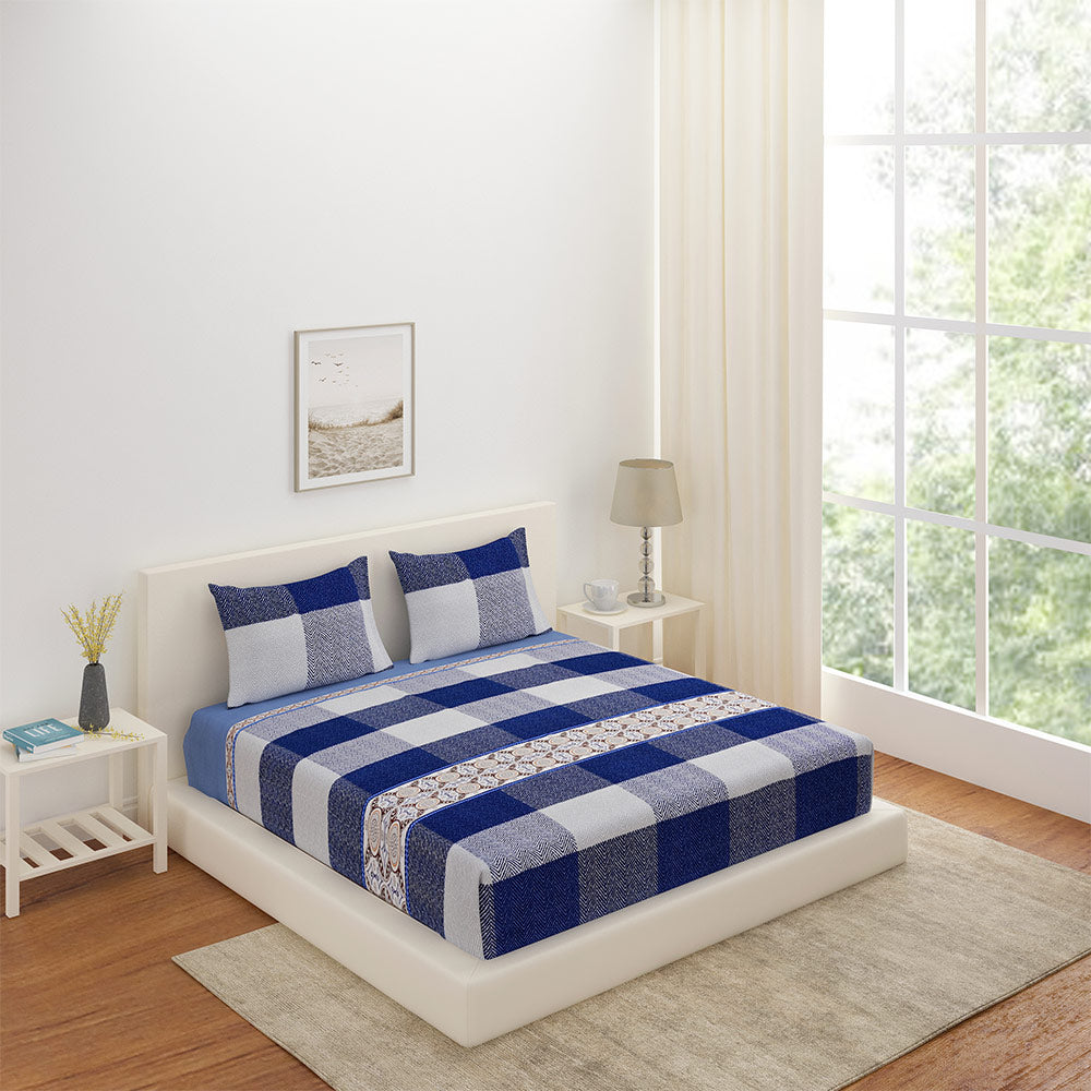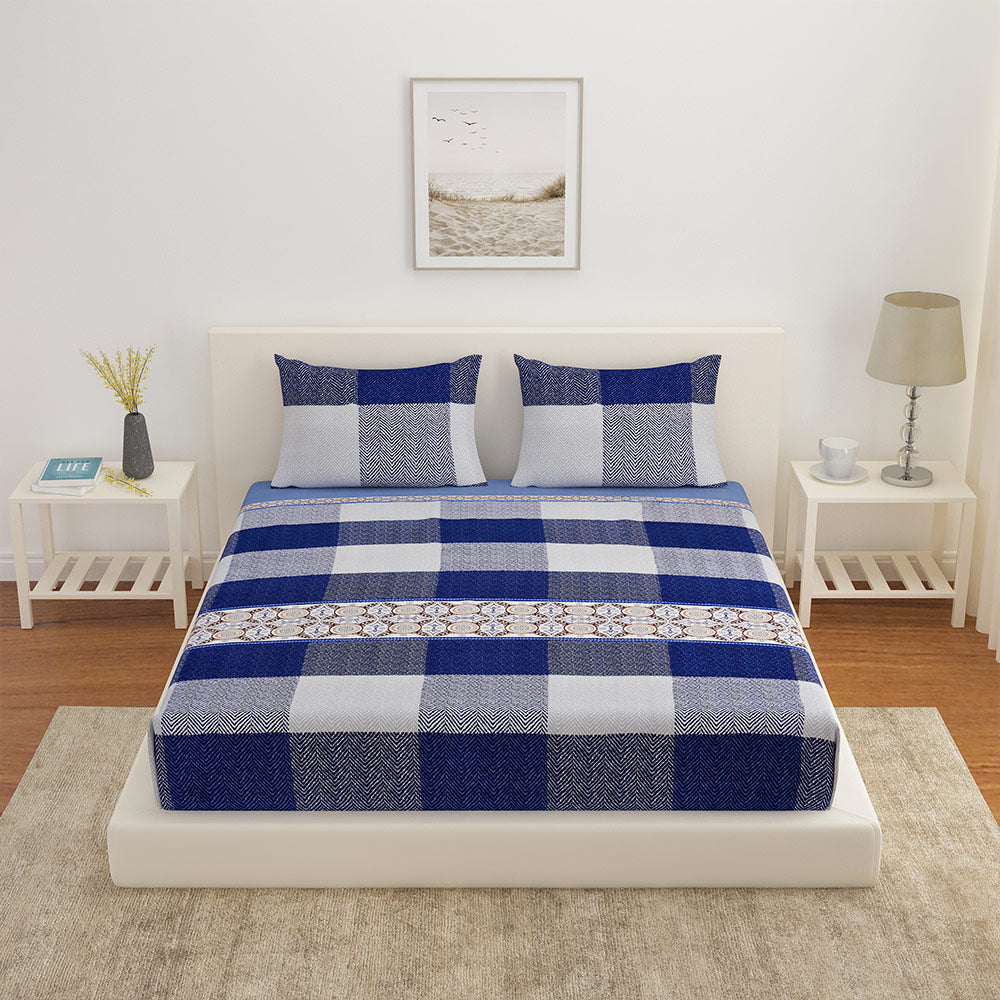 Checkered Polyester King Bedsheet with 2 Pillow Covers (Blue)