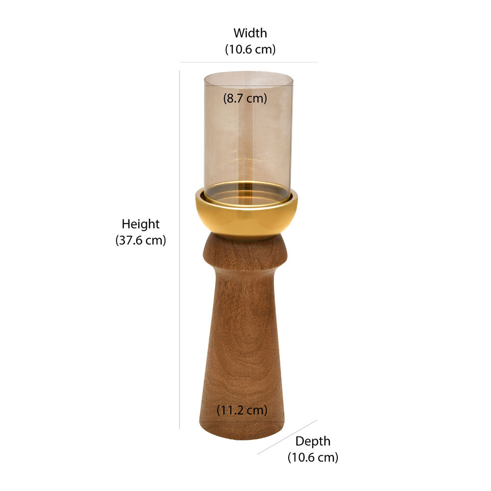 Decorative Dual Arch Wooden & Glass Candle Holder (Small, Gold & Brown)