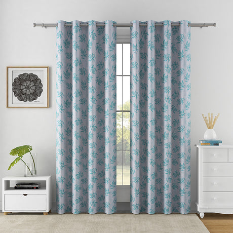 In-store ExclusiveLeaf Design 5 Ft Polyester Window Curtains Set of 2 (Seagreen)