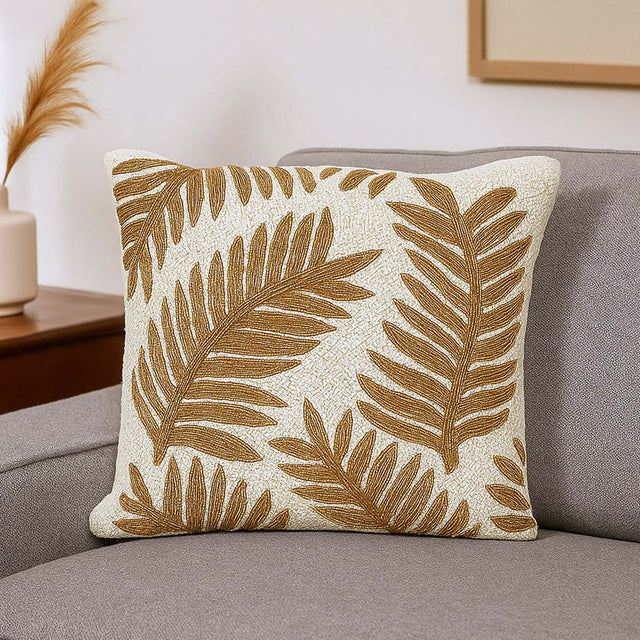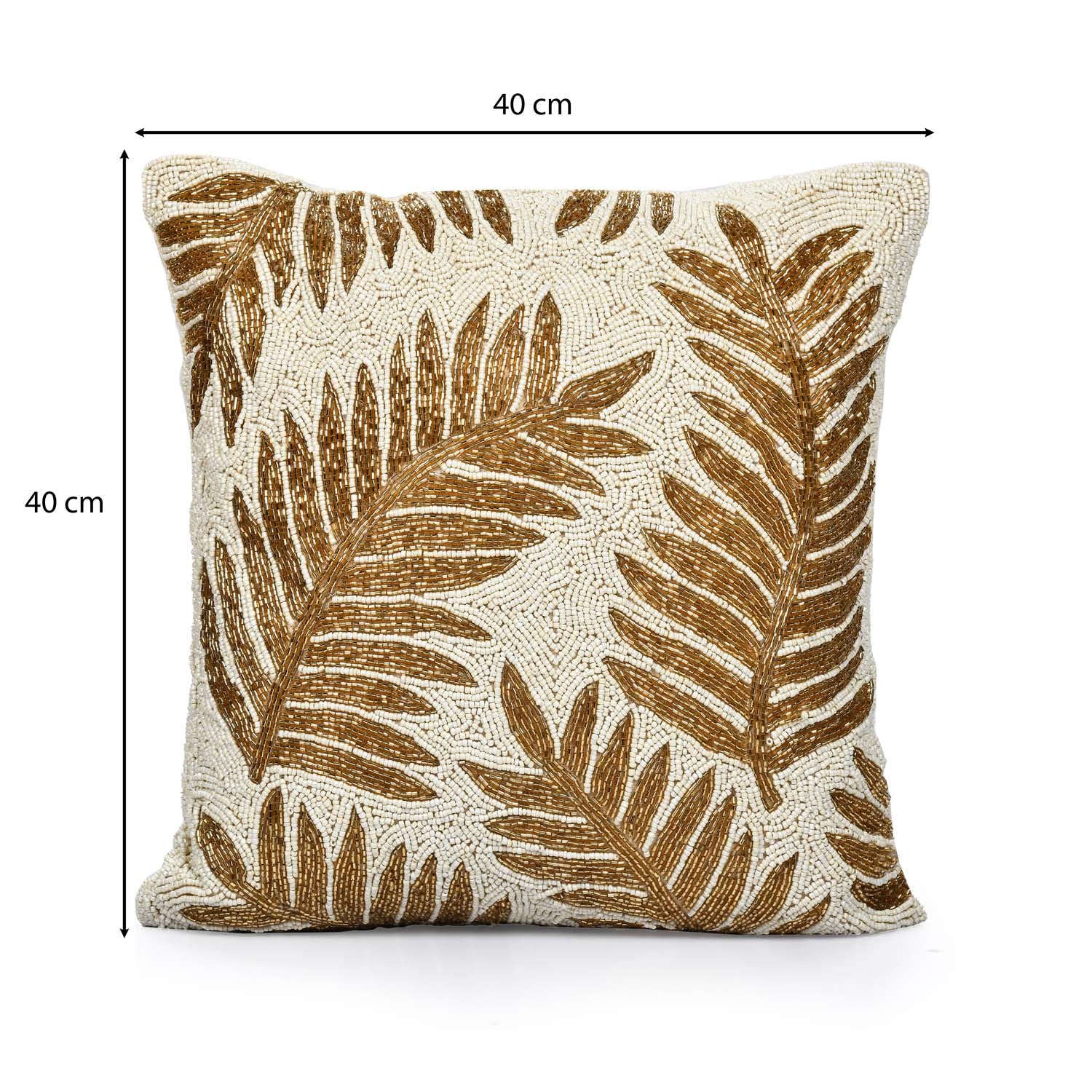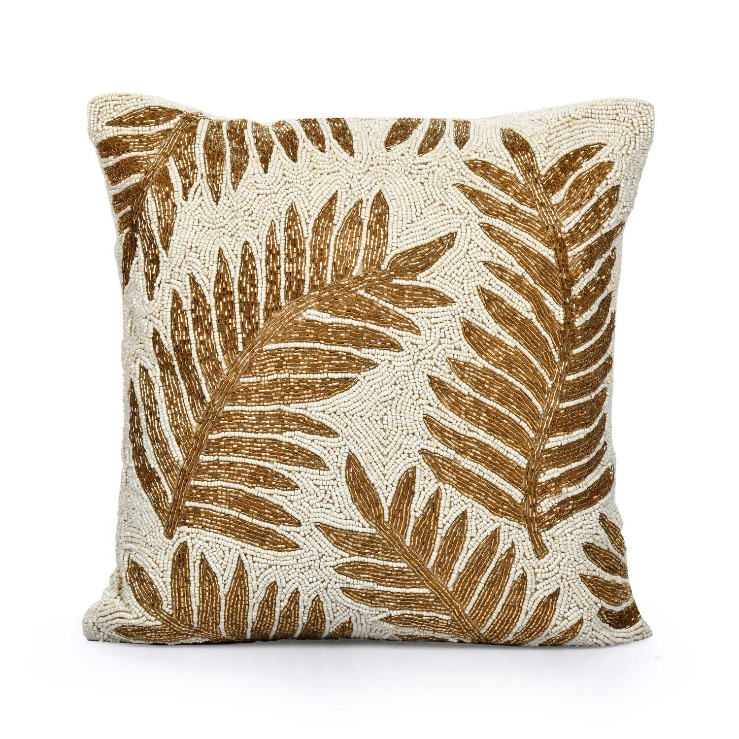 Leaf Beaded Polyester Cushion Cover- Gold