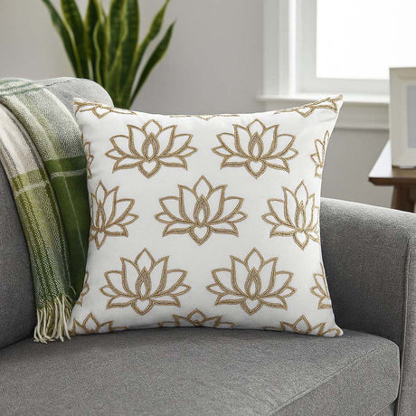 Multi Lotus Pattern Fabric Cushion Cover- Off-white