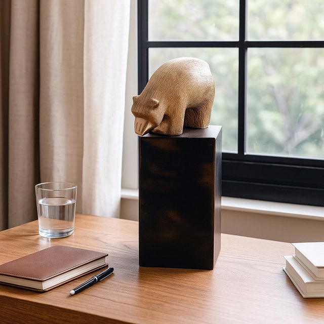 Tall Bear Metal Decorative Showpiece- Black & Gold