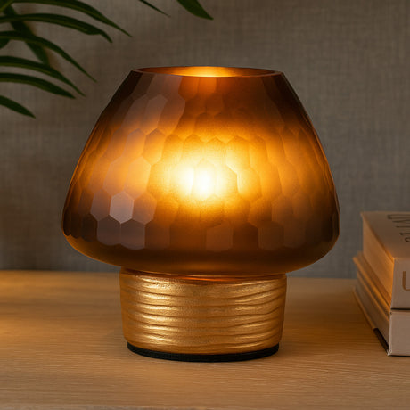 Dual Tone Metal & Glass Candle Stand Small- Brown & Gold