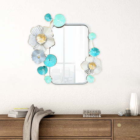 Flora Rectangular Decorative Metal Frame Mirror- Sea Green & Gold