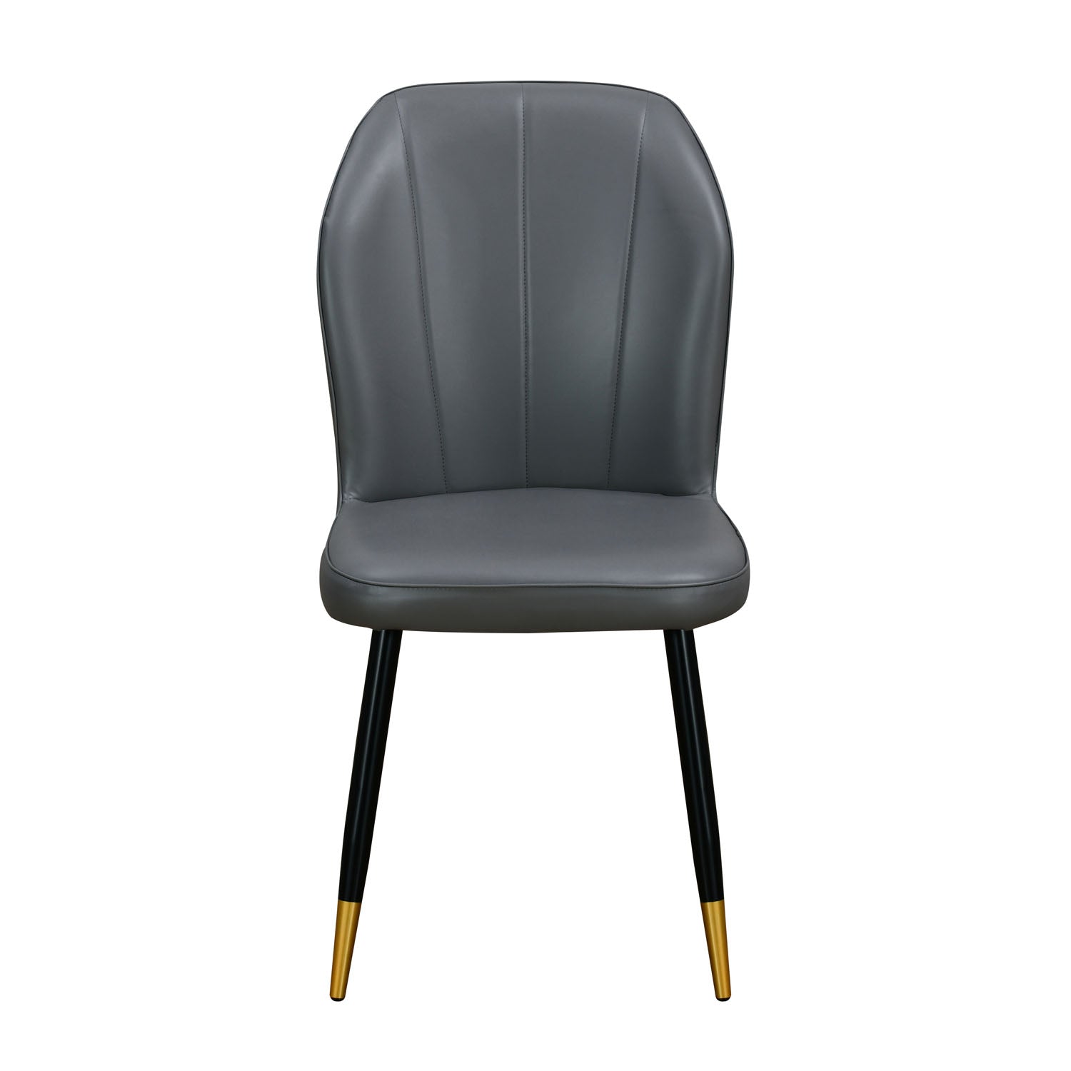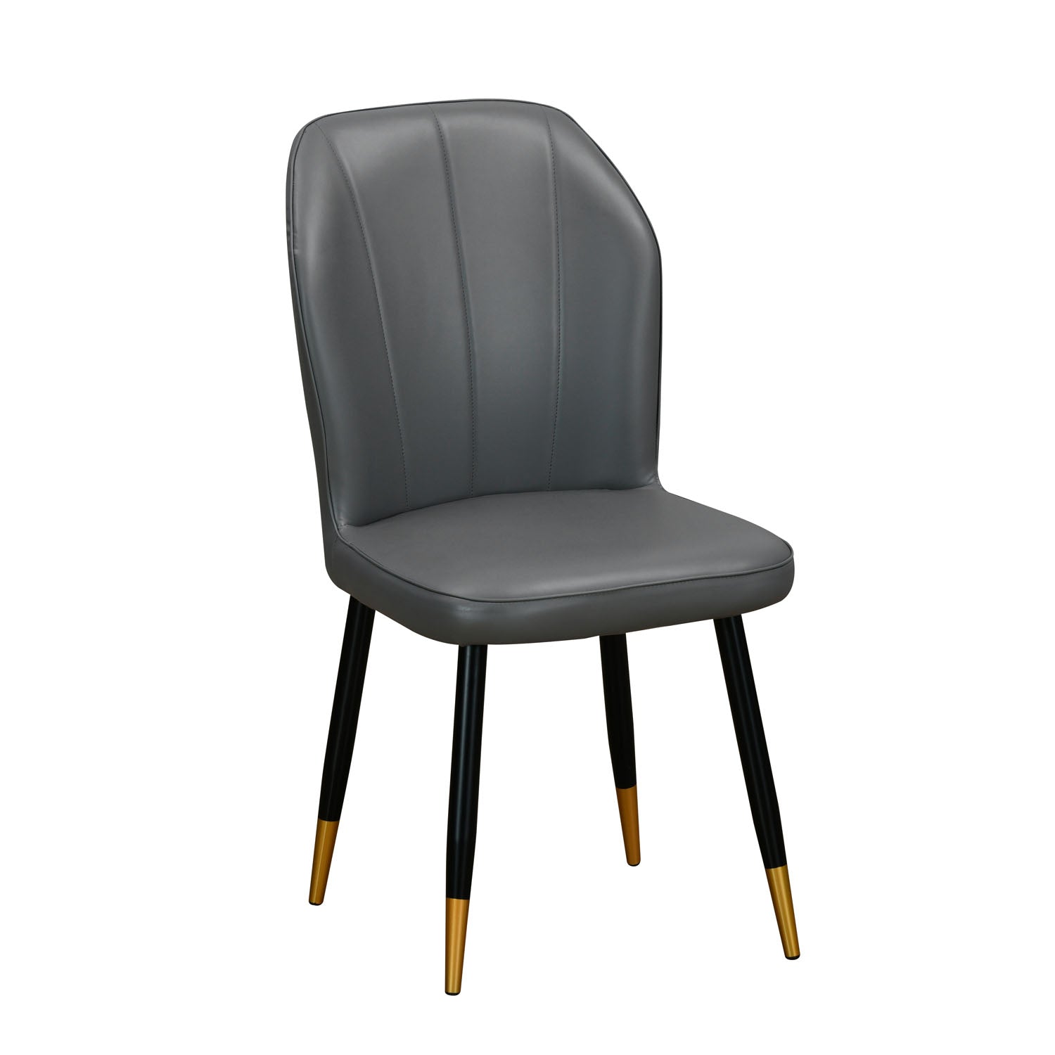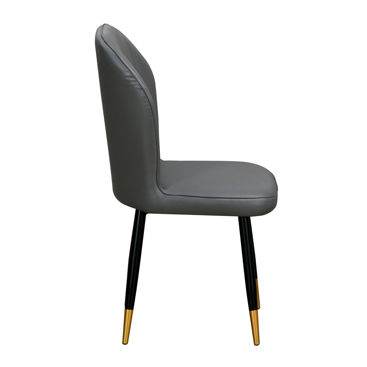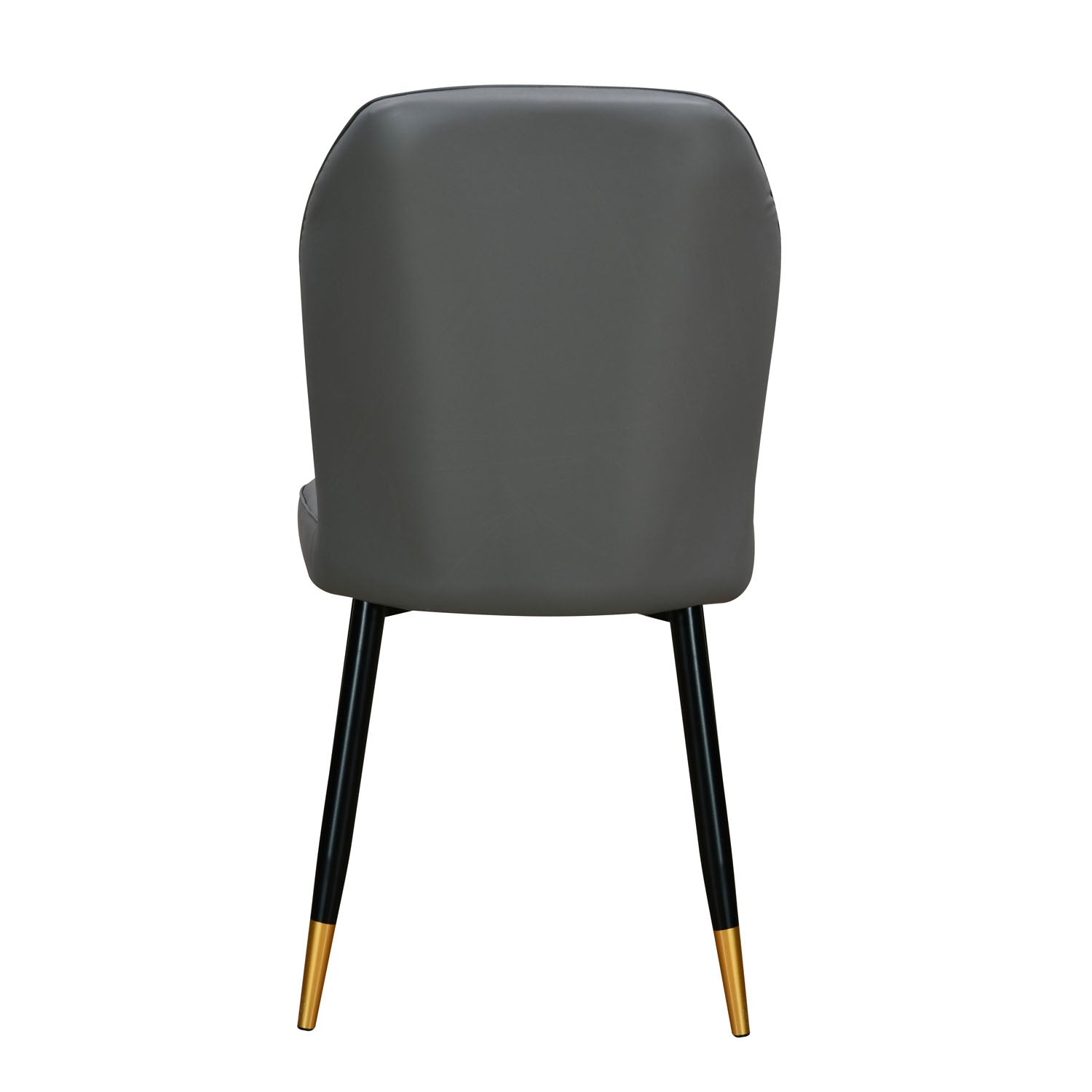 - Chairs rest on sleek powder-coated metal legs with gold accents for a touch of flair.