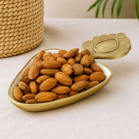 In-store ExclusivePeacock Feather Serving Platter Small- Off-white and Gold
