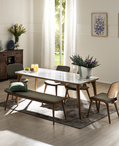Lindsey 1 + 4 + Bench Dining Kit (Marble Beige)
