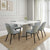 - Six dining chairs with dual-tone leatherette upholstery complement the table's design