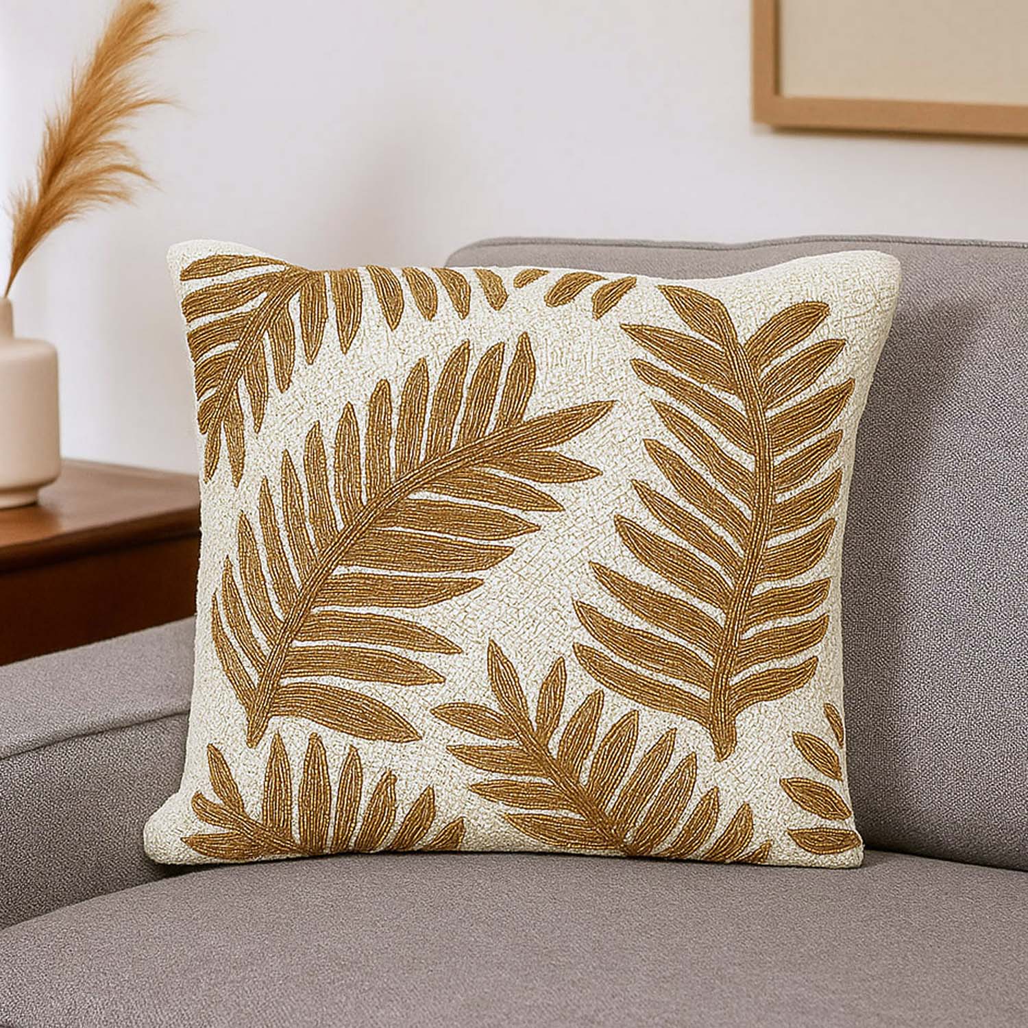 Enhance your home décor with the Nilkamal Homes Cushion Cover. Beaded leaf patterns add texture and beauty, while the gold shade brings richness and a luxurious touch. This makes it a stylish accent for sofas, armchairs, or beds. Crafted from plush polyester, it offers a soft, comfortable feel, and the convenient zipper closure allows easy insertion and removal of cushion inserts.