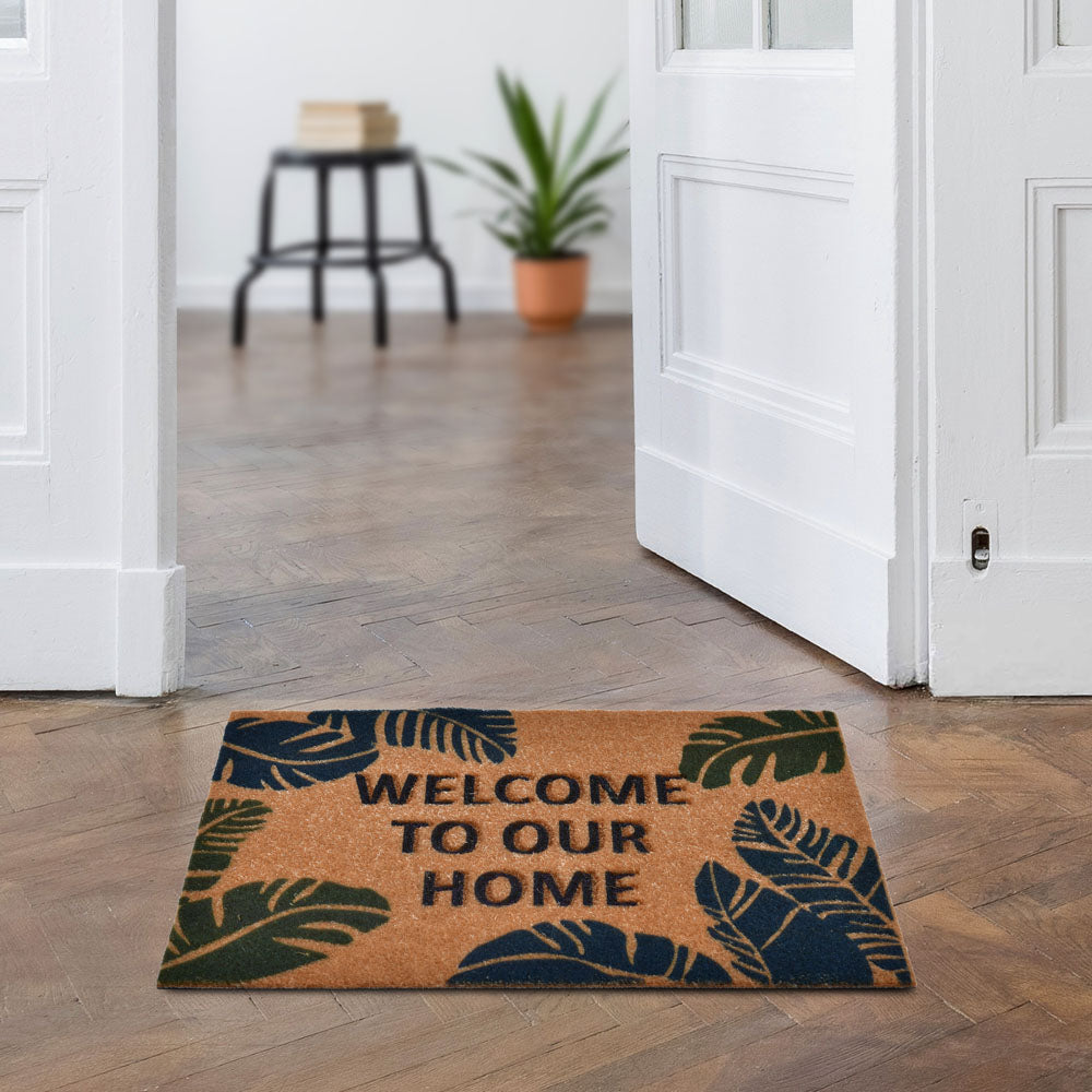 The Nilkamal Homes Welcome Printed Polyester Anti-Slip Door Mat combines durability and style with its polyester & recycled TPE backing construction. Its printed "welcome to our home" text adds a touch of elegance to your doorstep, greeting guests with charm. The anti-slip feature makes it perfect for indoor and outdoor use, enhancing safety and preventing accidents. It effectively traps dirt and debris, keeping your home clean and inviting. Cleaning is a breeze—simply use a vacuum for regular maintenance and deeper cleaning.