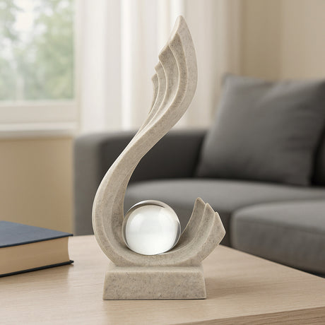 In-store ExclusiveWave Swirl with Crystal Sphere Table Décor Polyresin Showpiece- Sand Brown