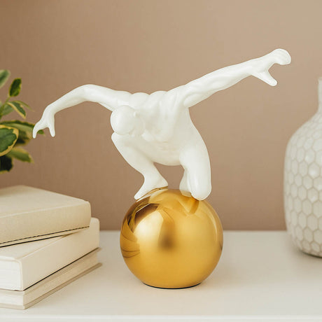 In-store ExclusiveHuman on Golden Sphere Decorative Showpiece- White and Gold