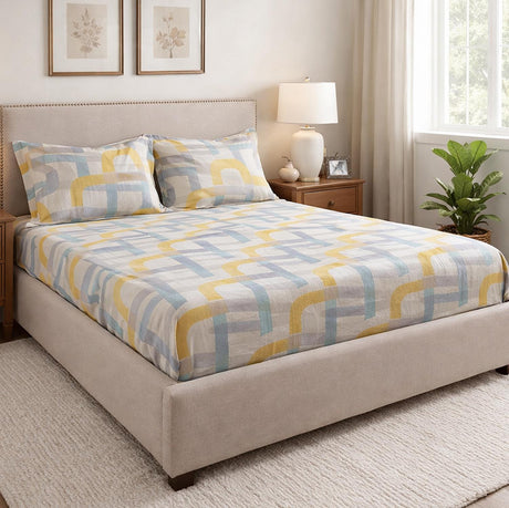 In-store ExclusiveGeometric Arch Polyester Queen Bedsheet with Pillow Covers- Multicolor