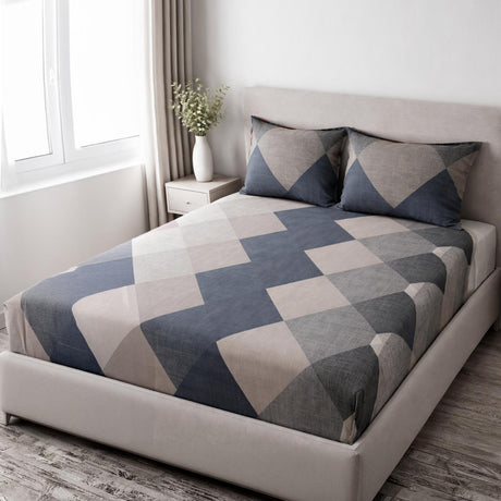 In-store ExclusiveDiamond Pattern Polyester King Bedsheet with Pillow Covers- Multicolor