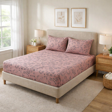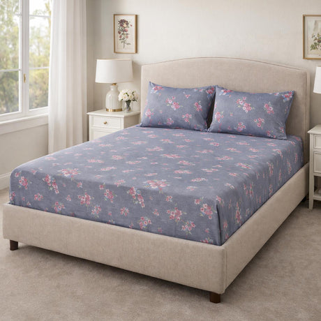 In-store ExclusivePetal Haze Polyester Queen Bedsheet with Pillow Covers- Multicolor